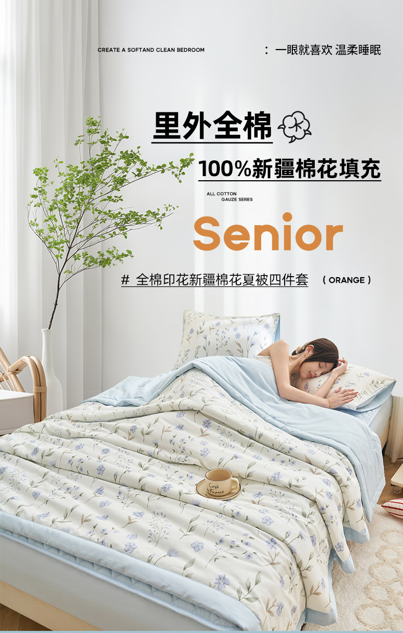 商品名称:(总)吾秀家居 吾诺 2026新款 12868全棉印花棉花夏被四件套 全棉夏被四件套新疆棉花被 - 经典系列