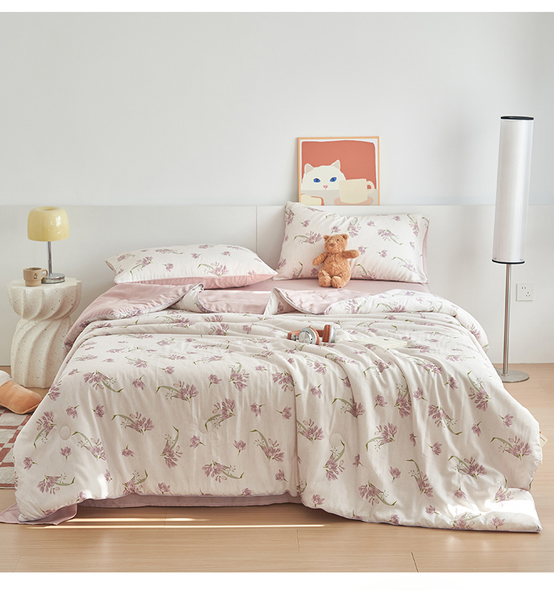 恬思语家纺 2026新款天丝麻大豆印花夏被夏凉被空调被 桃花朵朵