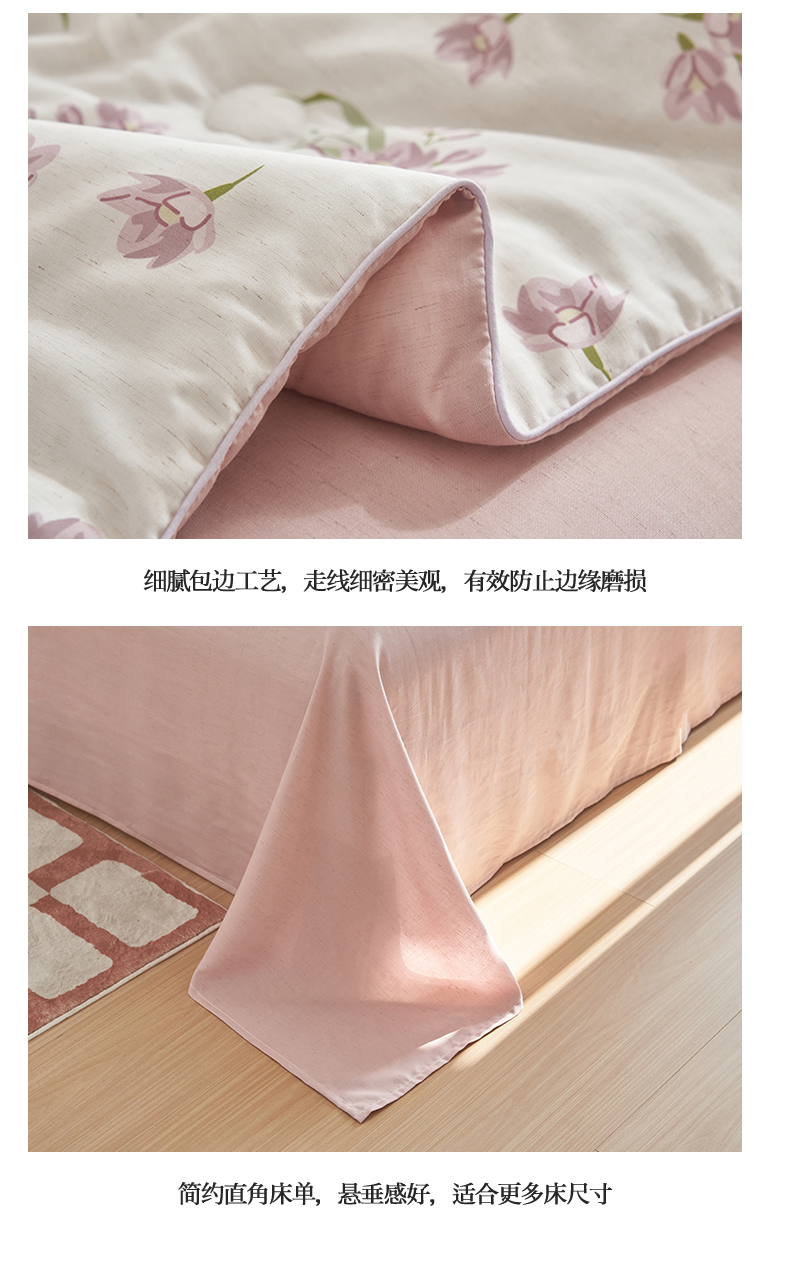 • 91家纺网 家纺一手货源 找家纺 恬思语家纺 2026新款天丝麻大豆印花夏被夏凉被空调被 桃花朵朵