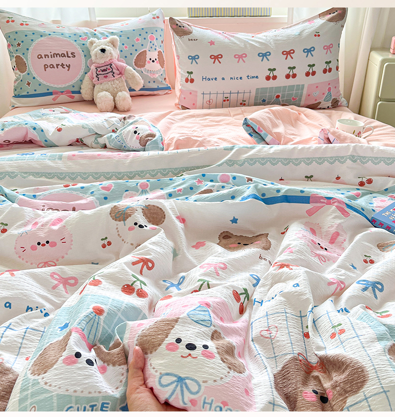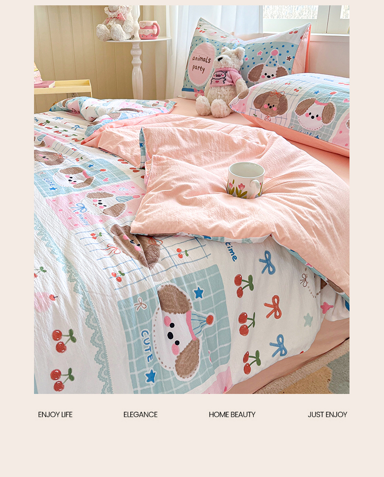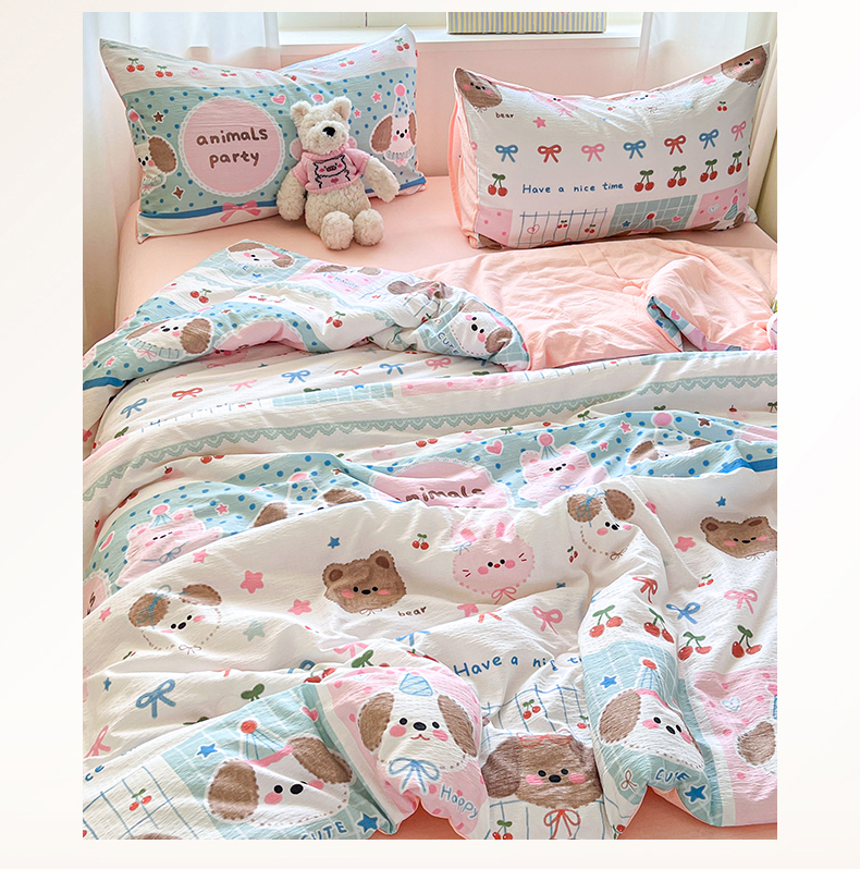 (总)盛秋家纺 2026新款卡通款A类水洗棉印花四件套,爱心猫咪+花朵蓝,格子铺粉+花朵蓝,满山猫+猫爪,软萌汪汪蓝+花朵粉,森林小象蓝+花朵蓝,生日派对+花朵粉,天使小马粉+花朵蓝,田园萌狗+花朵咖,甜茶日记+花朵粉,小狗来信+花朵粉,熊熊乐园+花朵咖,修勾蓝+花朵蓝