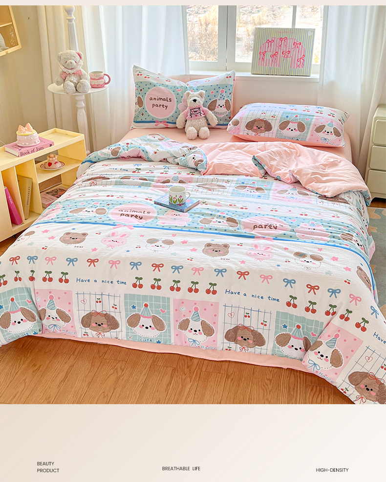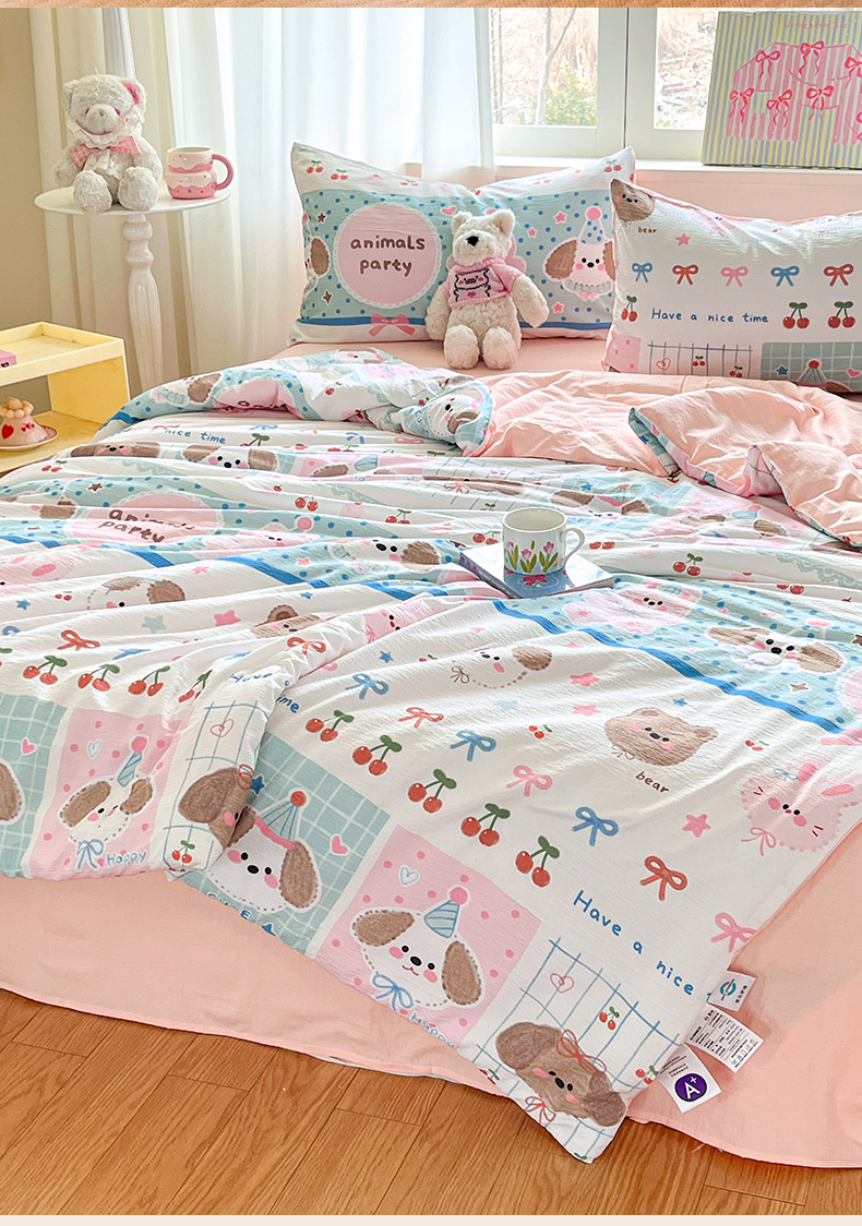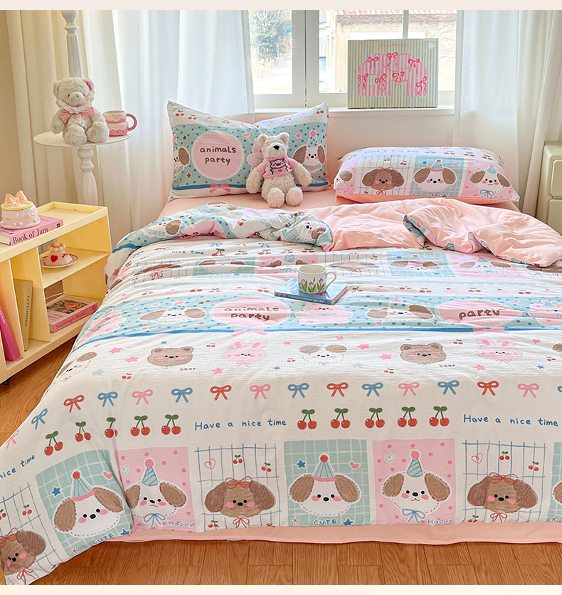 盛秋家纺 2026新款皱皱纱印花夏被-萝拉 小狗来信+奶油粉