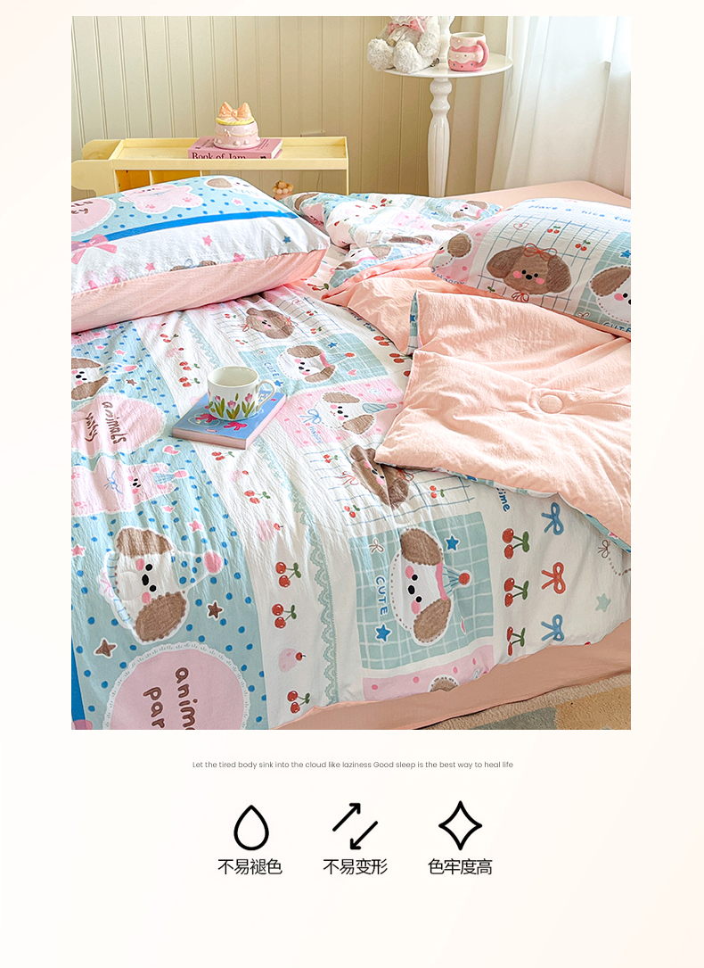• 91家纺网 家纺一手货源 找家纺 (总)盛秋家纺 2026新款卡通款A类水洗棉印花四件套,爱心猫咪+花朵蓝,格子铺粉+花朵蓝,满山猫+猫爪,软萌汪汪蓝+花朵粉,森林小象蓝+花朵蓝,生日派对+花朵粉,天使小马粉+花朵蓝,田园萌狗+花朵咖,甜茶日记+花朵粉,小狗来信+花朵粉,熊熊乐园+花朵咖,修勾蓝+花朵蓝