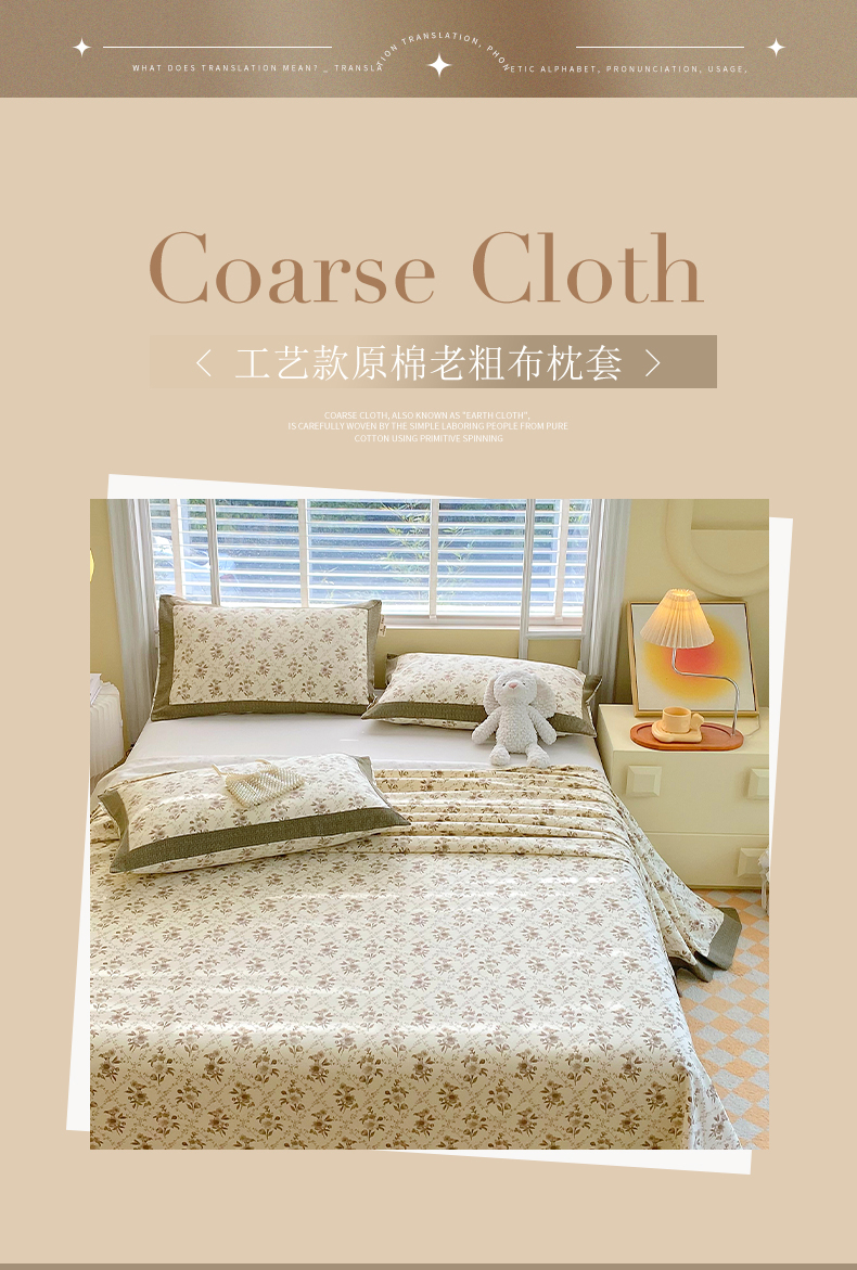 商品名称:春皖家纺 2026新款全棉老粗布工艺款单枕套枕套单件 倩影米