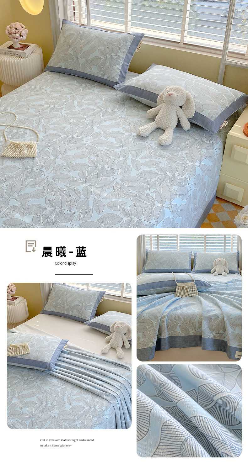 (总)春皖家纺 2024新款竹纤维绣花床单凉席风格一,流星蓝,浅藕粉,淡雅绿,苍岭绿,雅岩灰,霞光紫