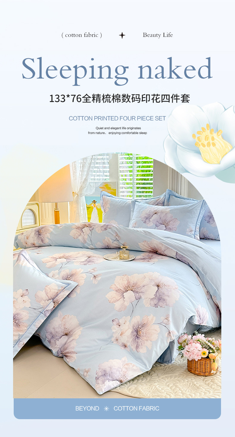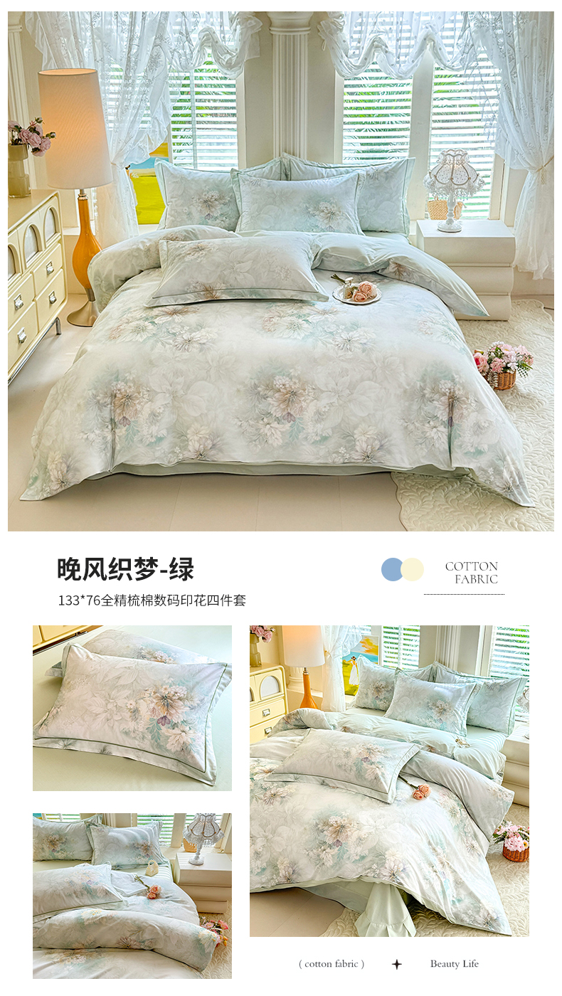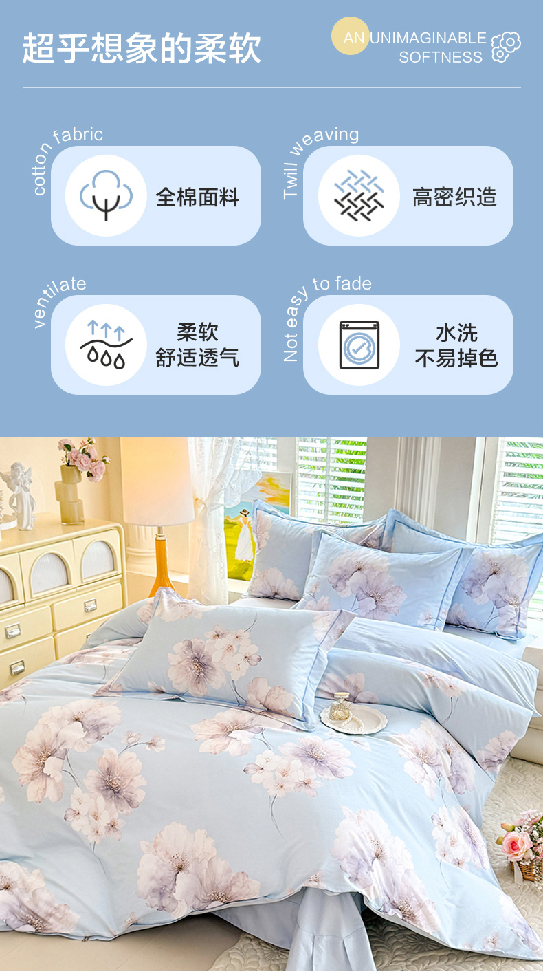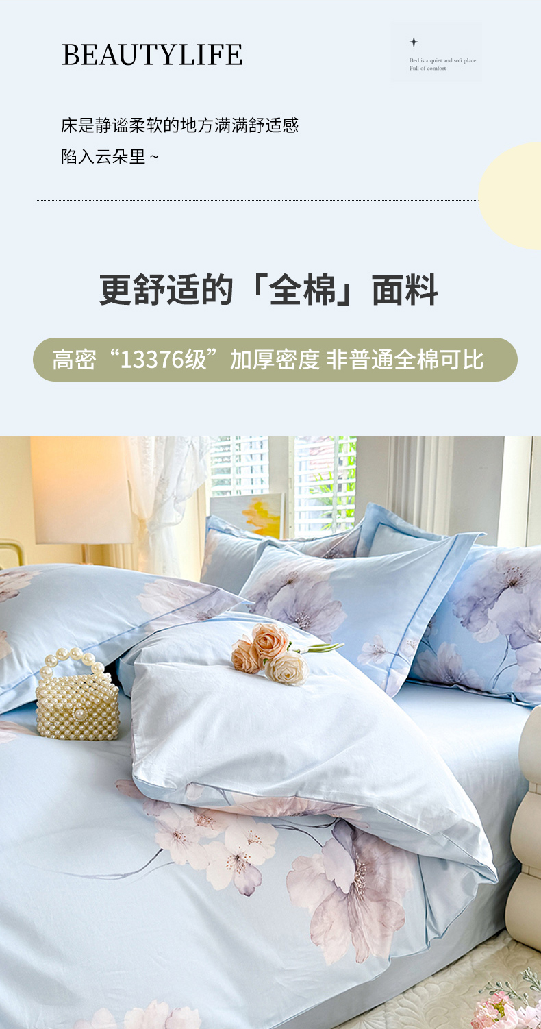 当前位置: 91家纺网 > 商品网购 > 床品套件 > 四件套 > 全棉普通四件套 > 巧玲珑 2026新款全棉纯棉13376数码印花四件套 云屏浅梦-蓝
