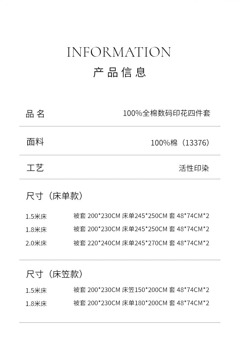 【床笠款】1.5四件套-被套200x230 | ¥140.00 |