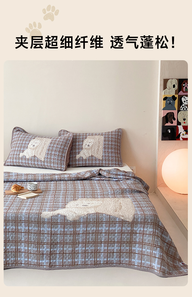 (总)麻依 2026新款软萌纱布床盖三件套系列,斑点小猫,博美,豆豆企鹅,懒床小狗,乐园小象,毛绒小狗,胖胖猫,胖胖企鹅,桃心KT,玩耍小咪,香蕉小猫,杂技萌宠,组合