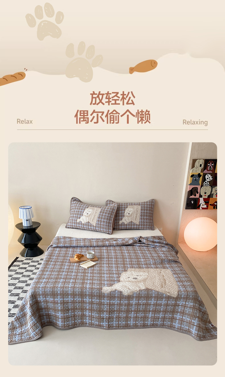 商品名称:麻依 2026新款软萌纱布床盖三件套系列 胖胖猫