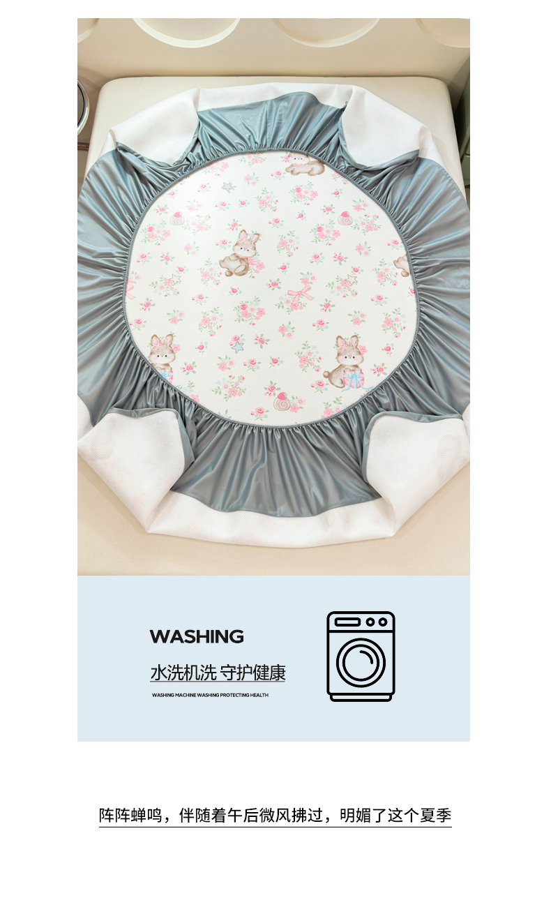 (总)丝羽坊 2026新款高密凉感丝印花乳胶凉席-床笠款,雾蓝花影,萌宠拼格,粉黛萌兔,格纹蝶影,奶白萌犬,浅蓝熊趣,糖果猫咪,彩糖点点,林间私语,薄荷甜心,爱的圈圈,春意盎然,奶绿汪仔,小白兔,小企鹅,小兔派对,星月
