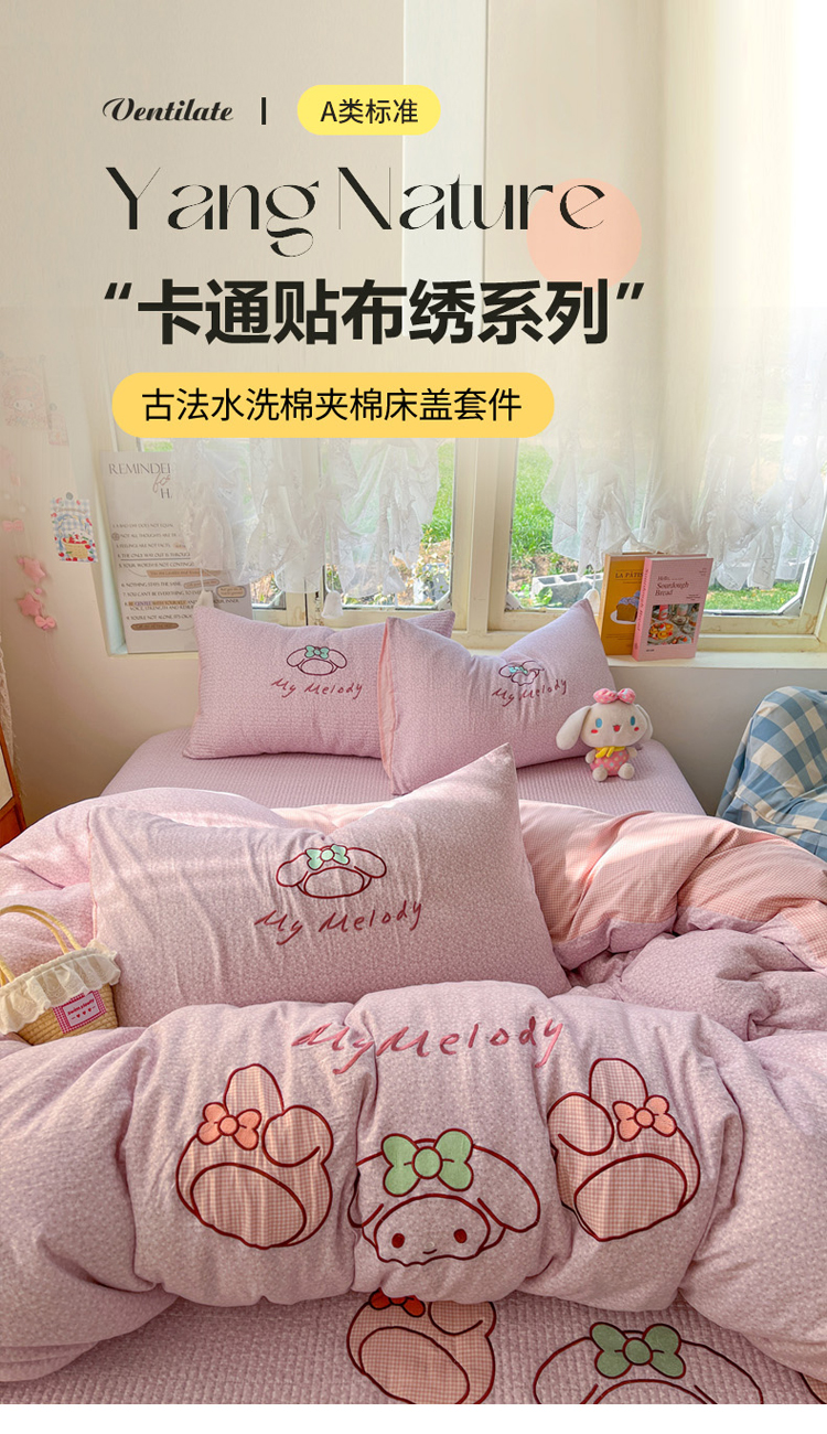 • 91家纺网 家纺一手货源 找家纺 萌飞 2026直播热款贴布绣加厚仿棉古法水洗棉夹棉床盖 美小蒂