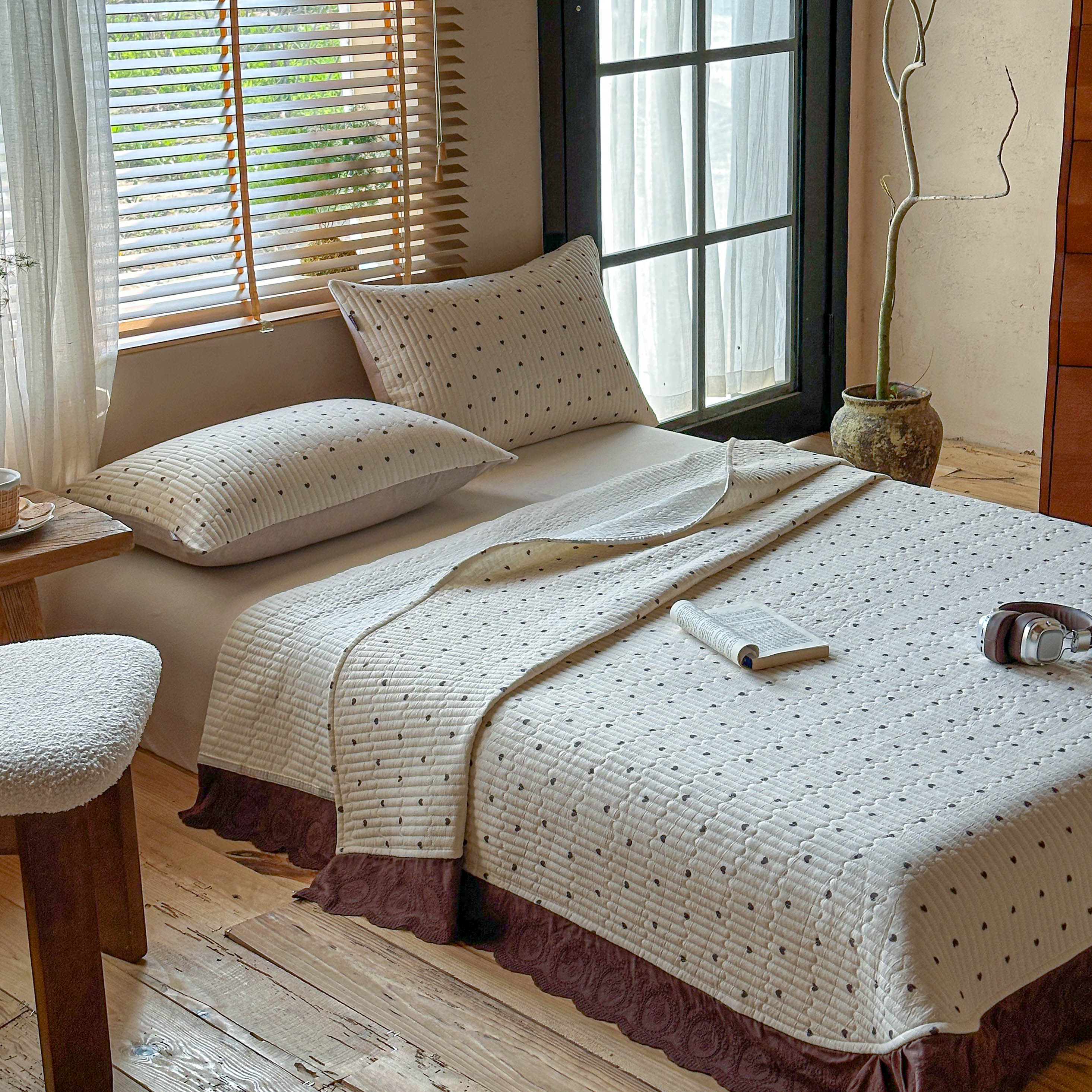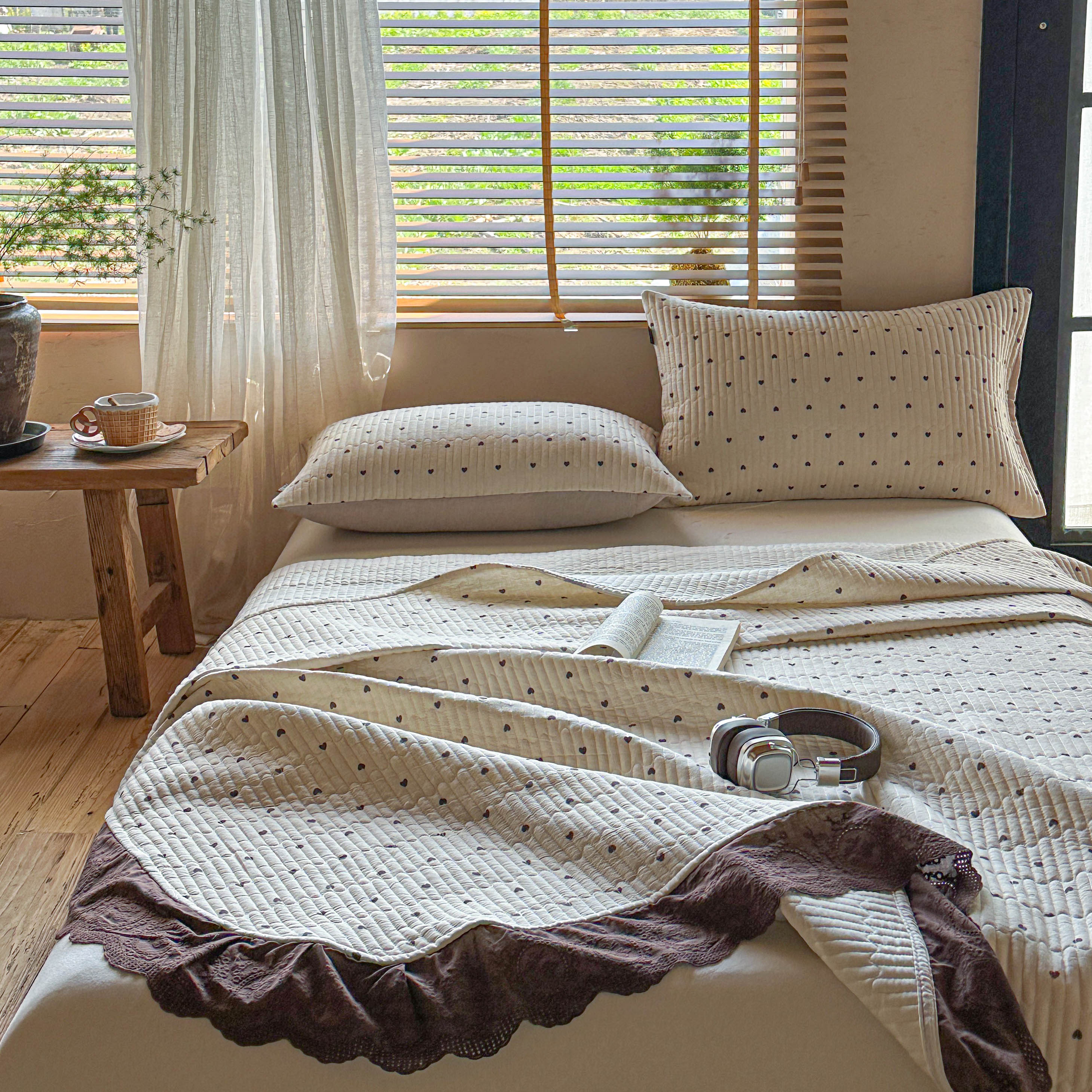 商品名称:孑寐家纺 2026新款亲肤舒适全棉棉麻单床盖床盖单件 爱心律动