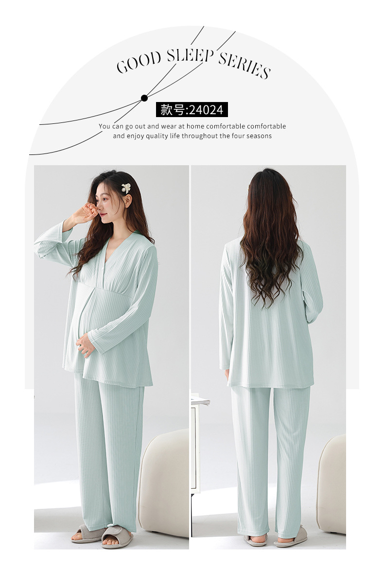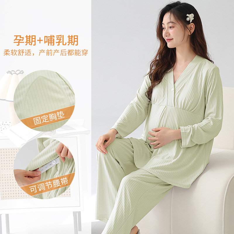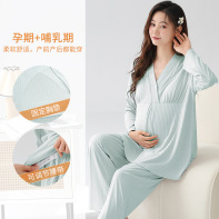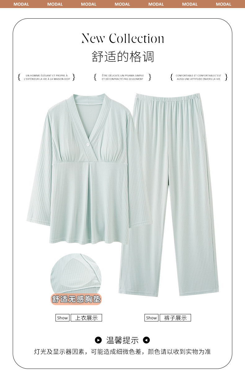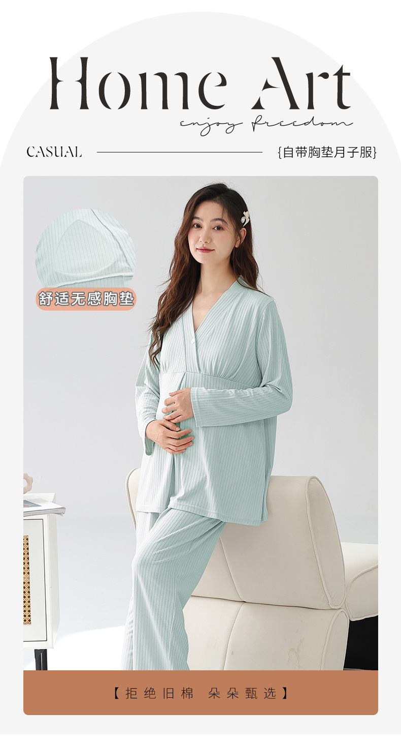 (总)洛兰沙家居馆 新款莫代尔纯色带胸垫月子服春秋季孕妇产后吸汗长袖睡衣套装