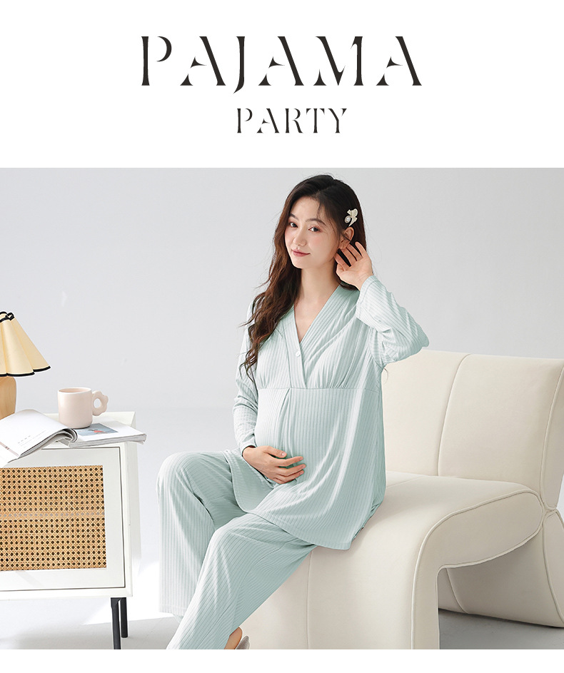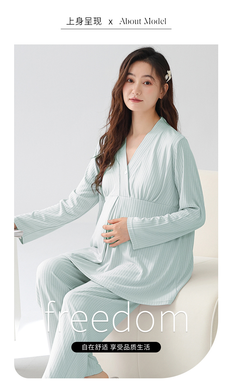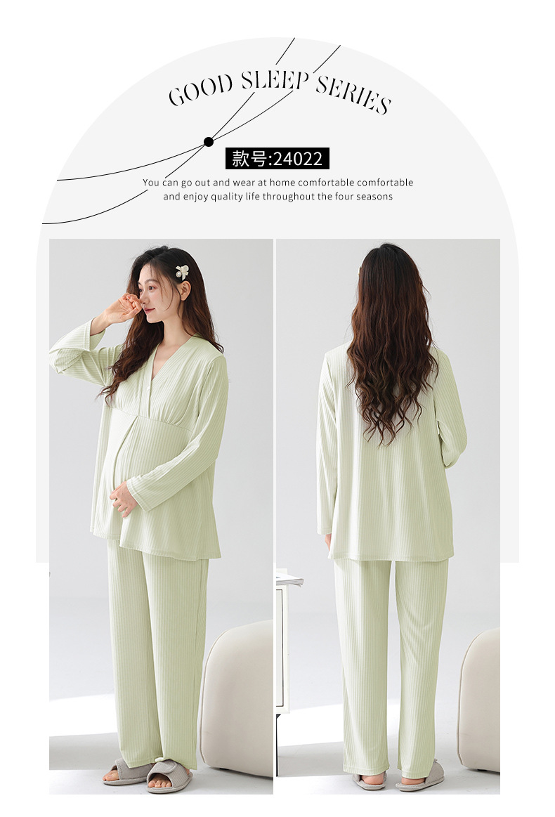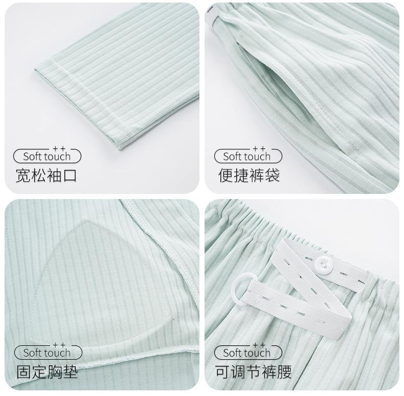 (总)洛兰沙家居馆 新款莫代尔纯色带胸垫月子服春秋季孕妇产后吸汗长袖睡衣套装