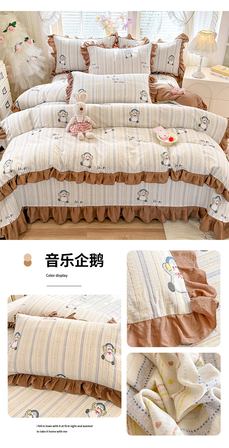 当前位置: 91家纺网 > 商品网购 > 床品套件 > 四件套 > 水洗棉四件套 > 唐人居 2026春夏新款皱皱水洗棉花边床盖四件套 芬德拉
