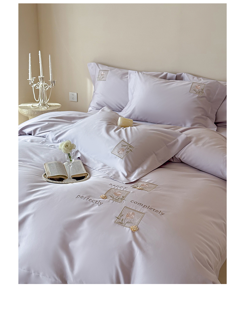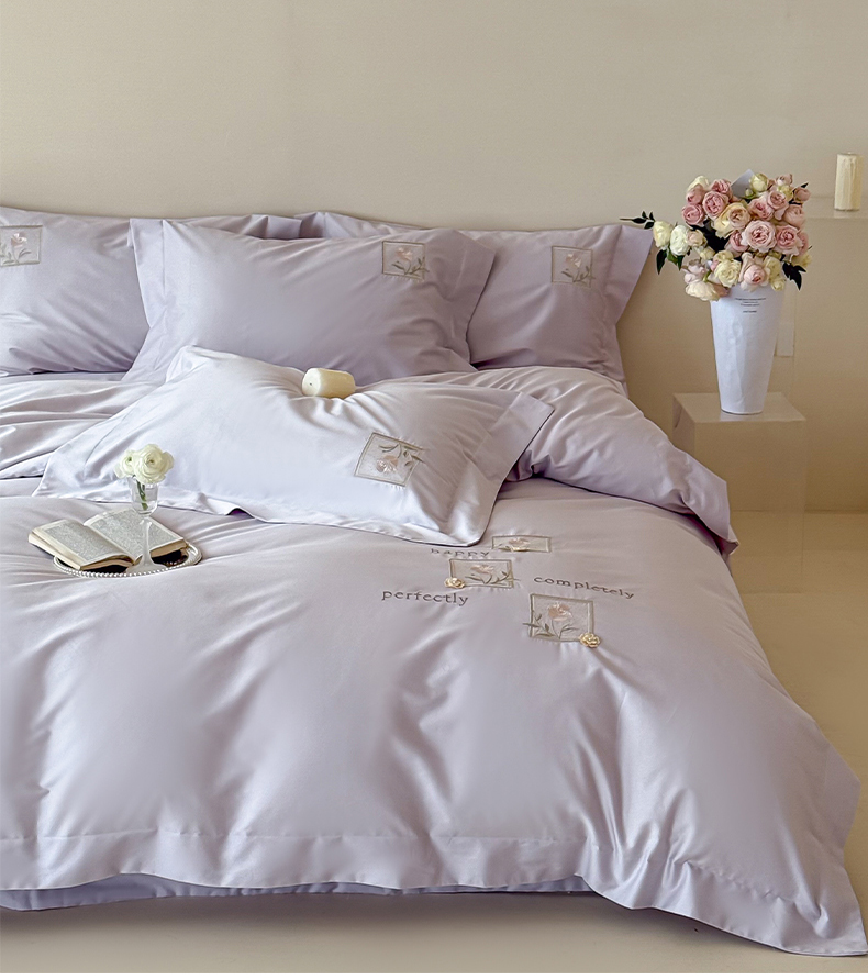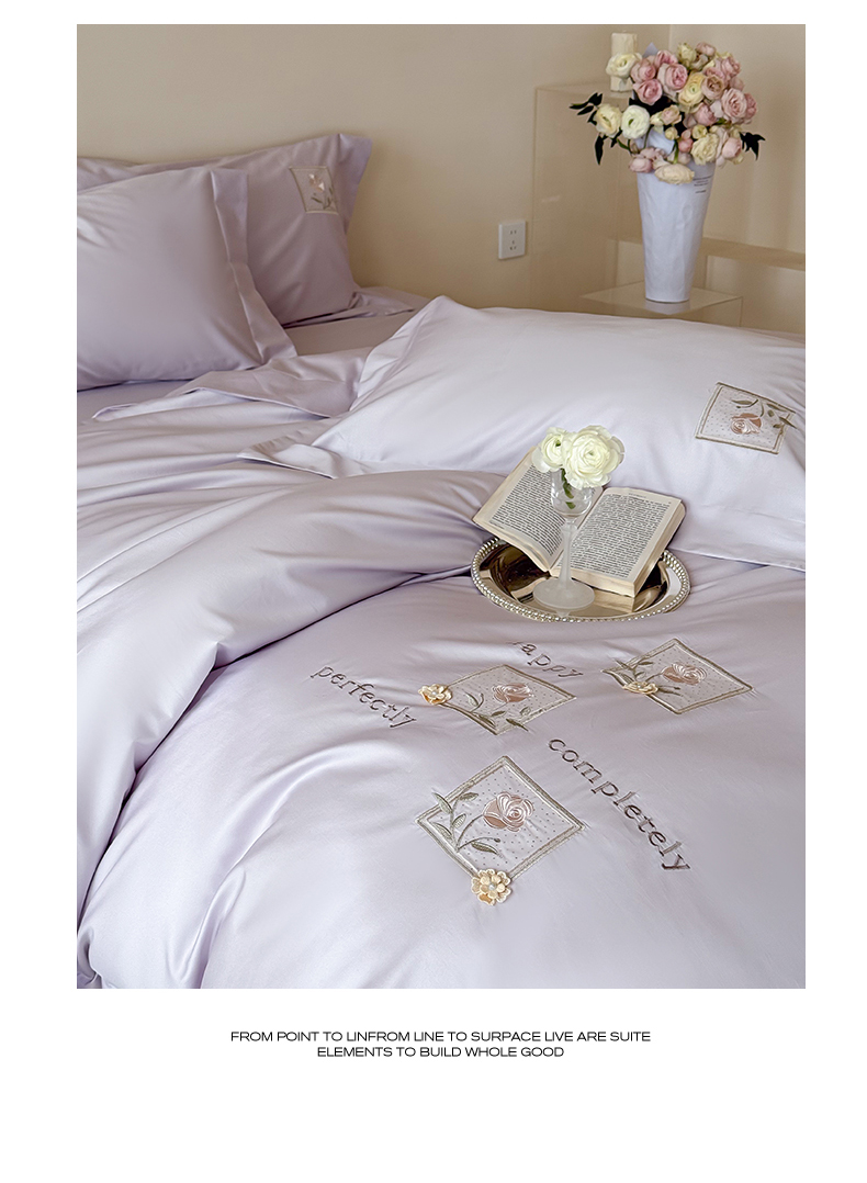 泽西 2026新品刺绣50s双股全棉长绒棉宽边四件套-花栖 花栖-梦幻紫【控价358-378】
