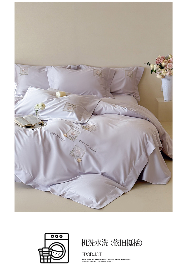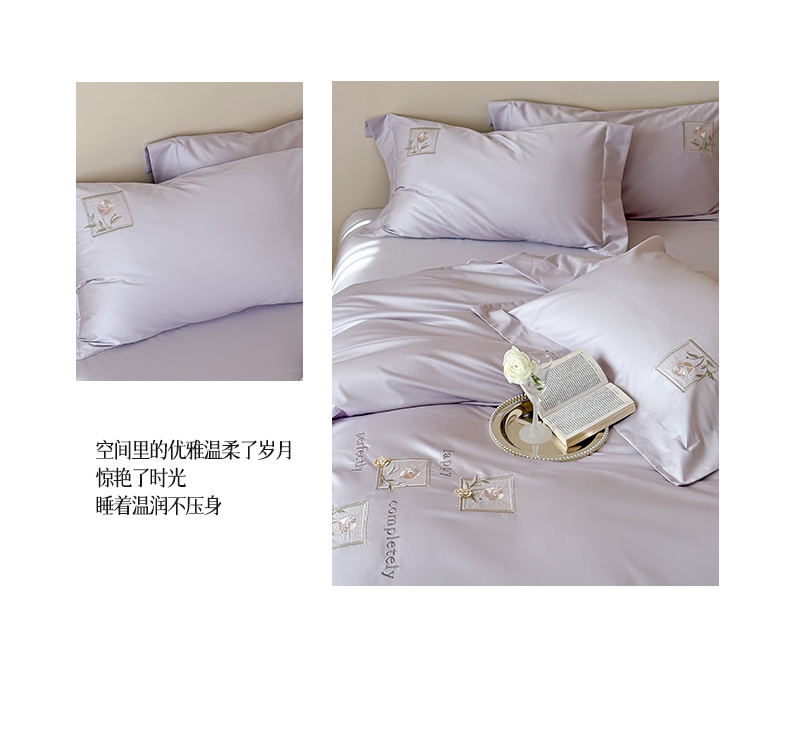 商品名称:泽西 2026新品刺绣50s双股全棉长绒棉宽边四件套-花栖 花栖-梦幻紫【控价358-378】