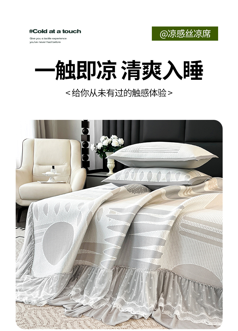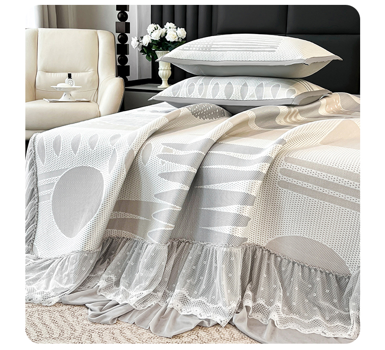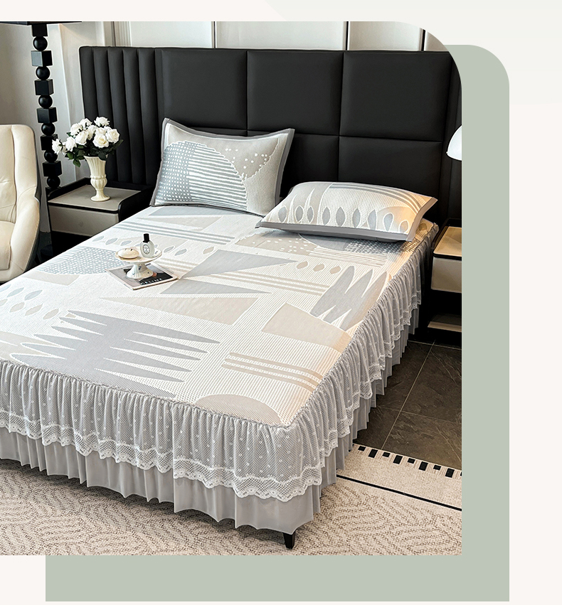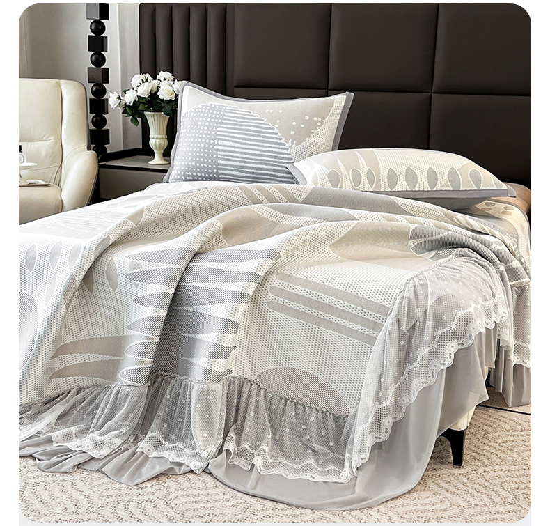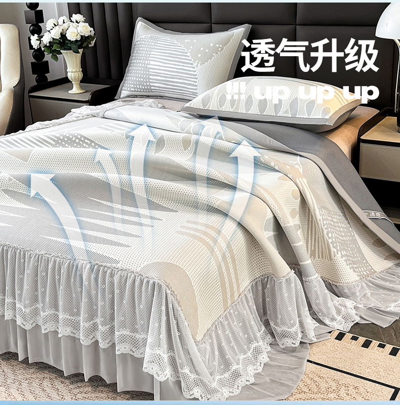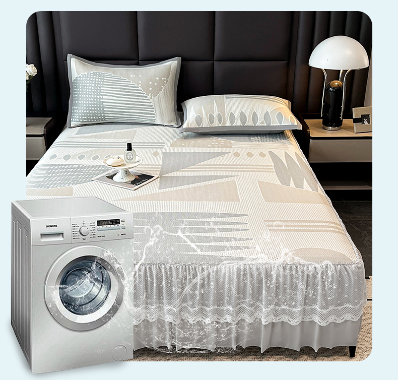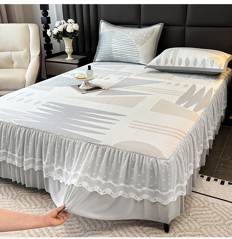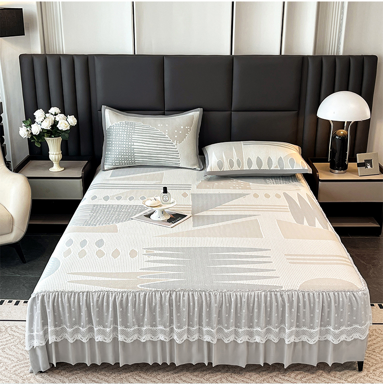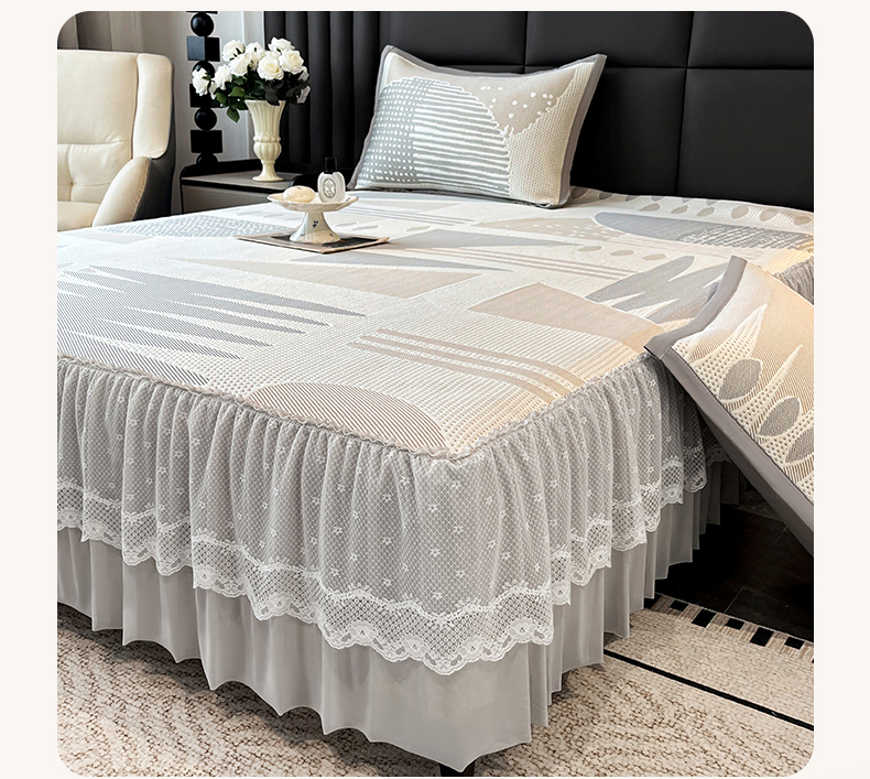 宜派家纺 2026新款几何PE凉感丝床裙款凉席三件套 几何灰-床裙