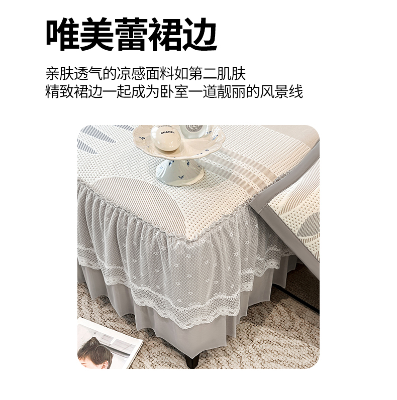 (总)宜派家纺 2026新款PE凉感丝床裙款凉席三件套,织序床裙-粉,织序床裙-灰,织序床裙-蓝,织序床裙-绿