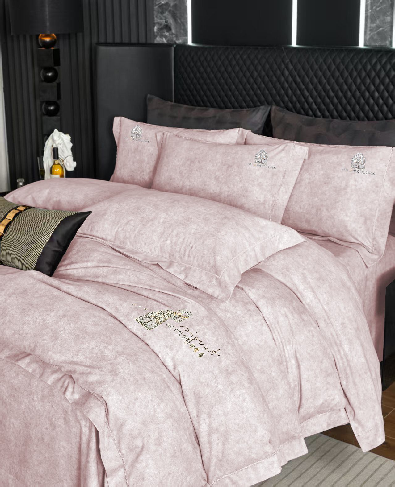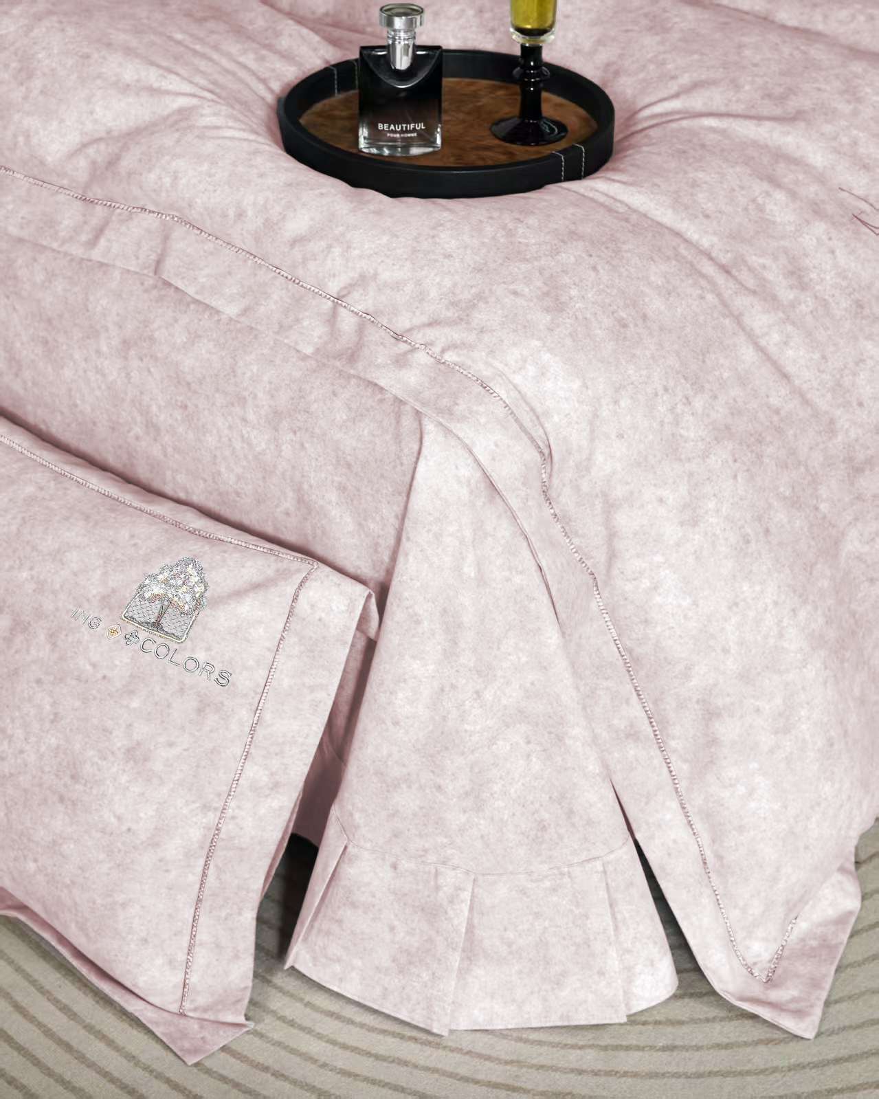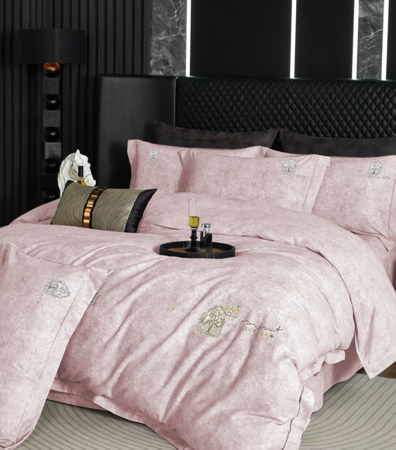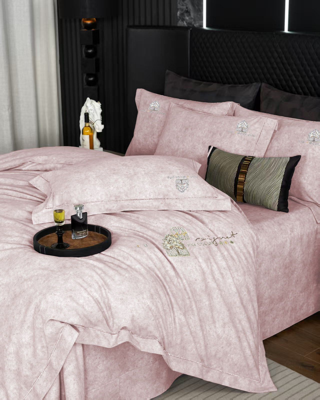 玖玖爱家纺 2026新款波尔卡全棉全工艺AB版刺绣四件套 粉豆沙