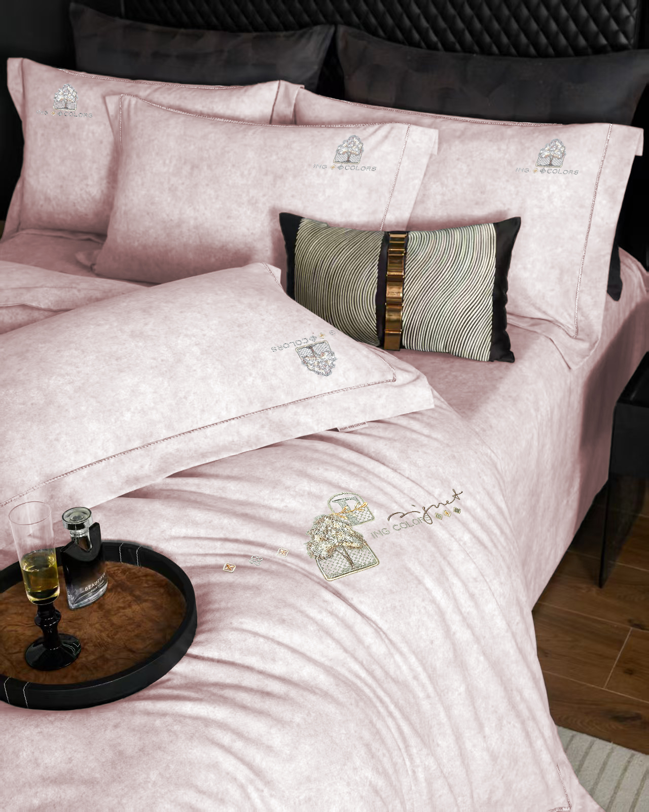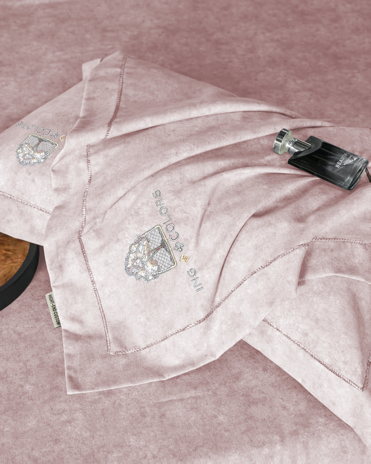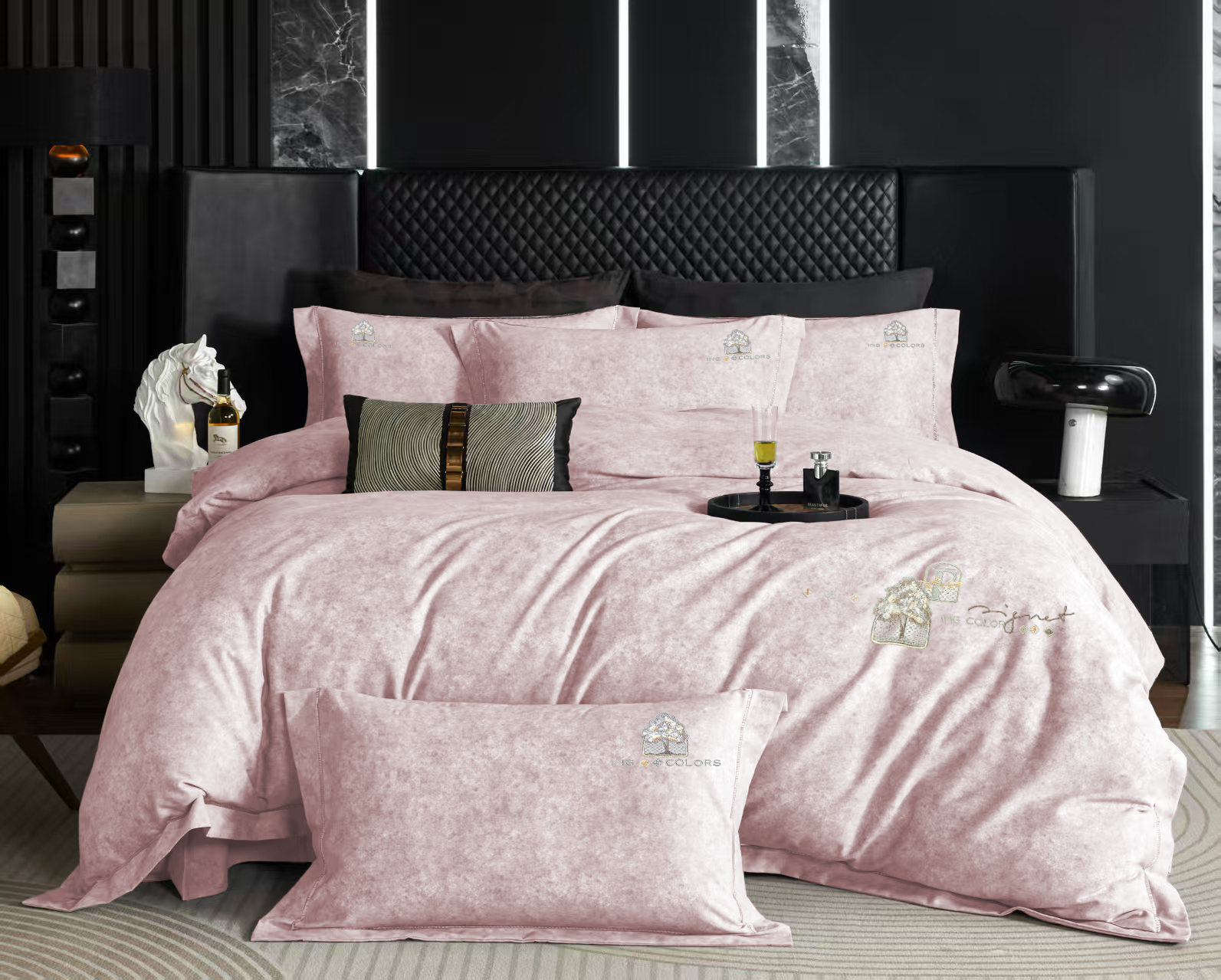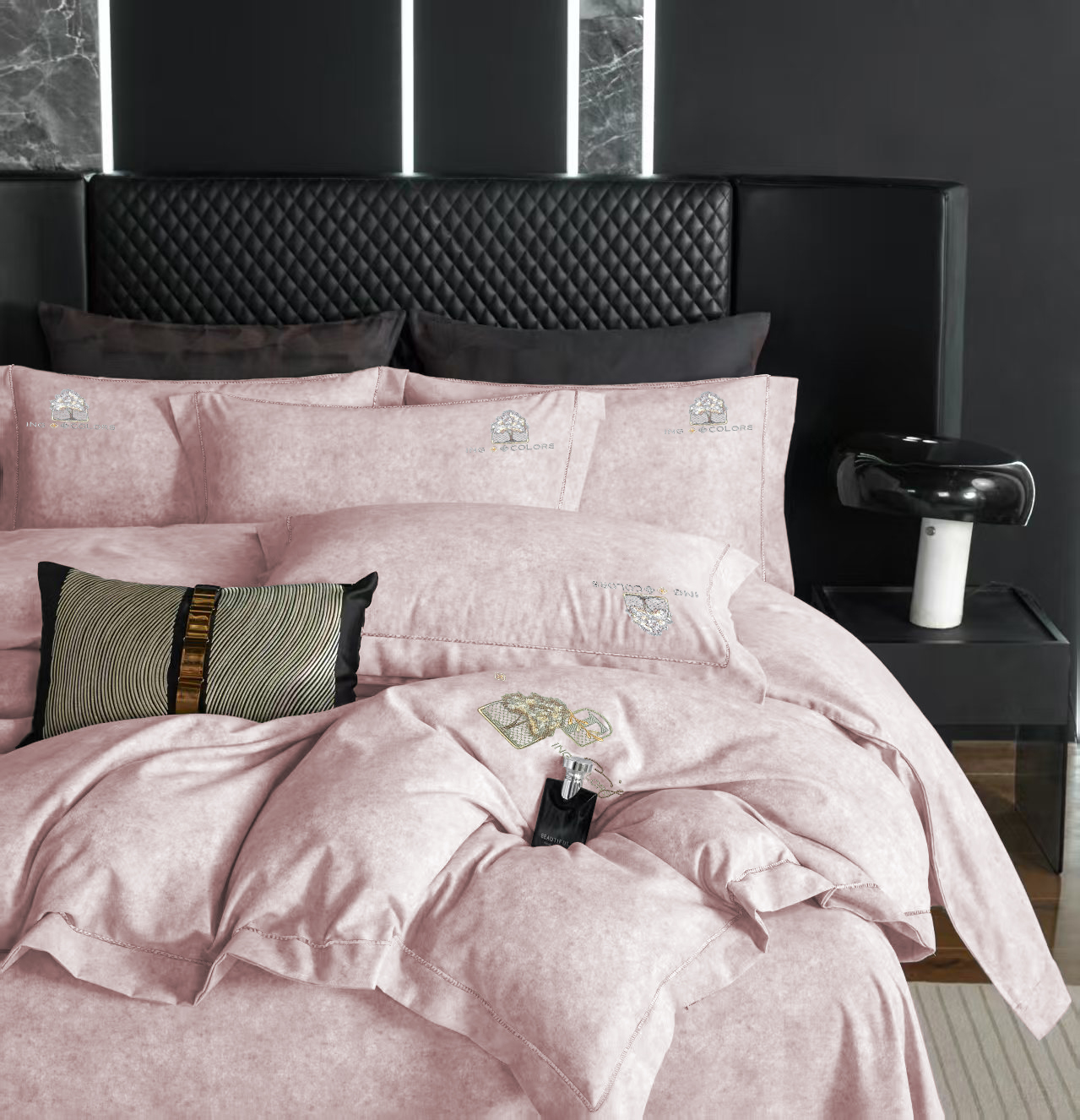 玖玖爱家纺 2026新款波尔卡全棉全工艺AB版刺绣四件套 粉豆沙