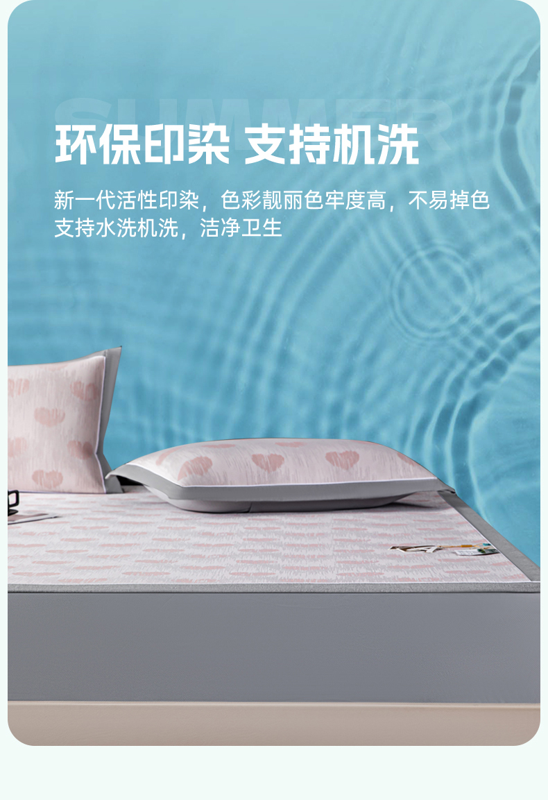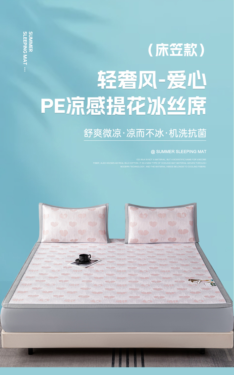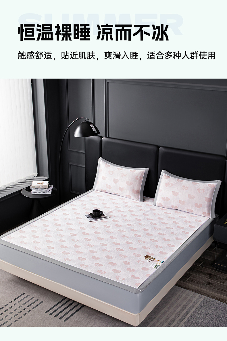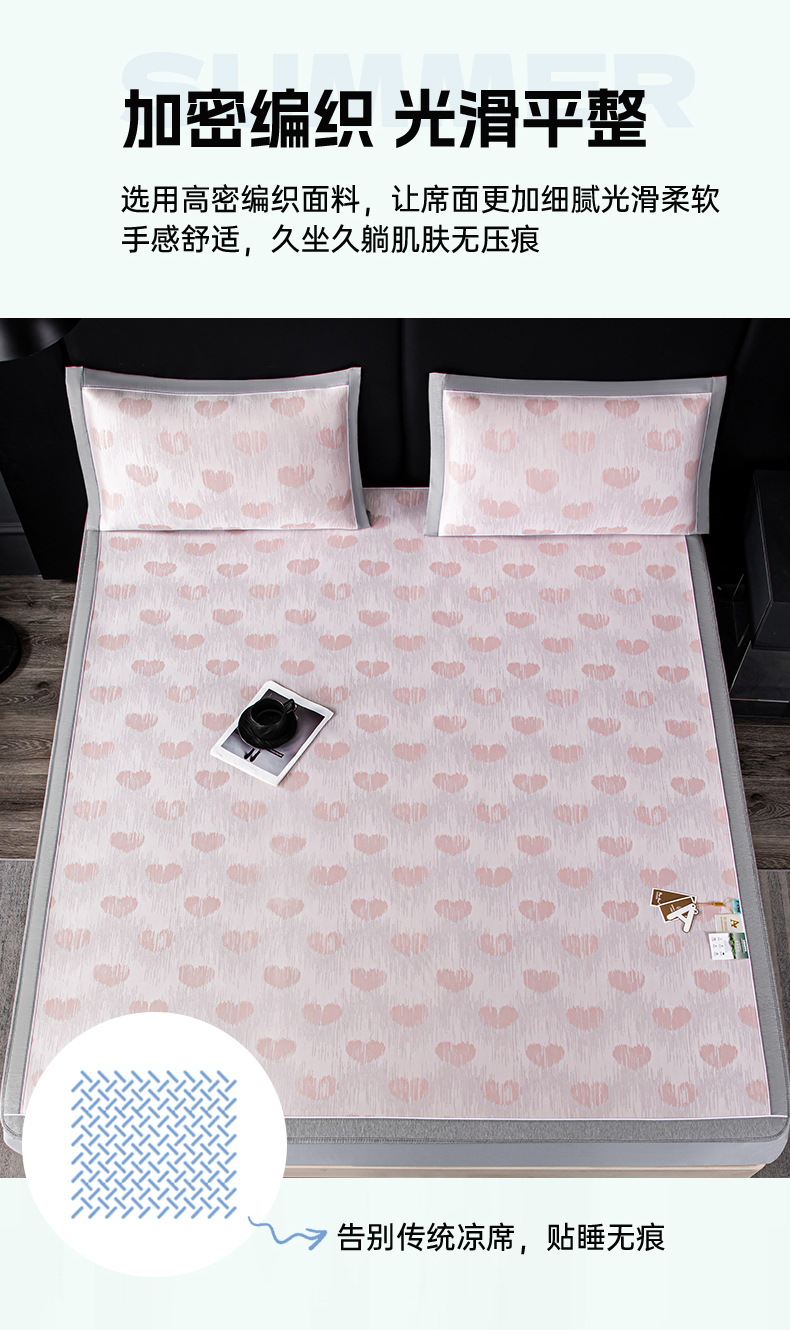 商品名称:小牛席业 2026新款爱心凉感冰丝席凉席席子(床笠款) 粉色
