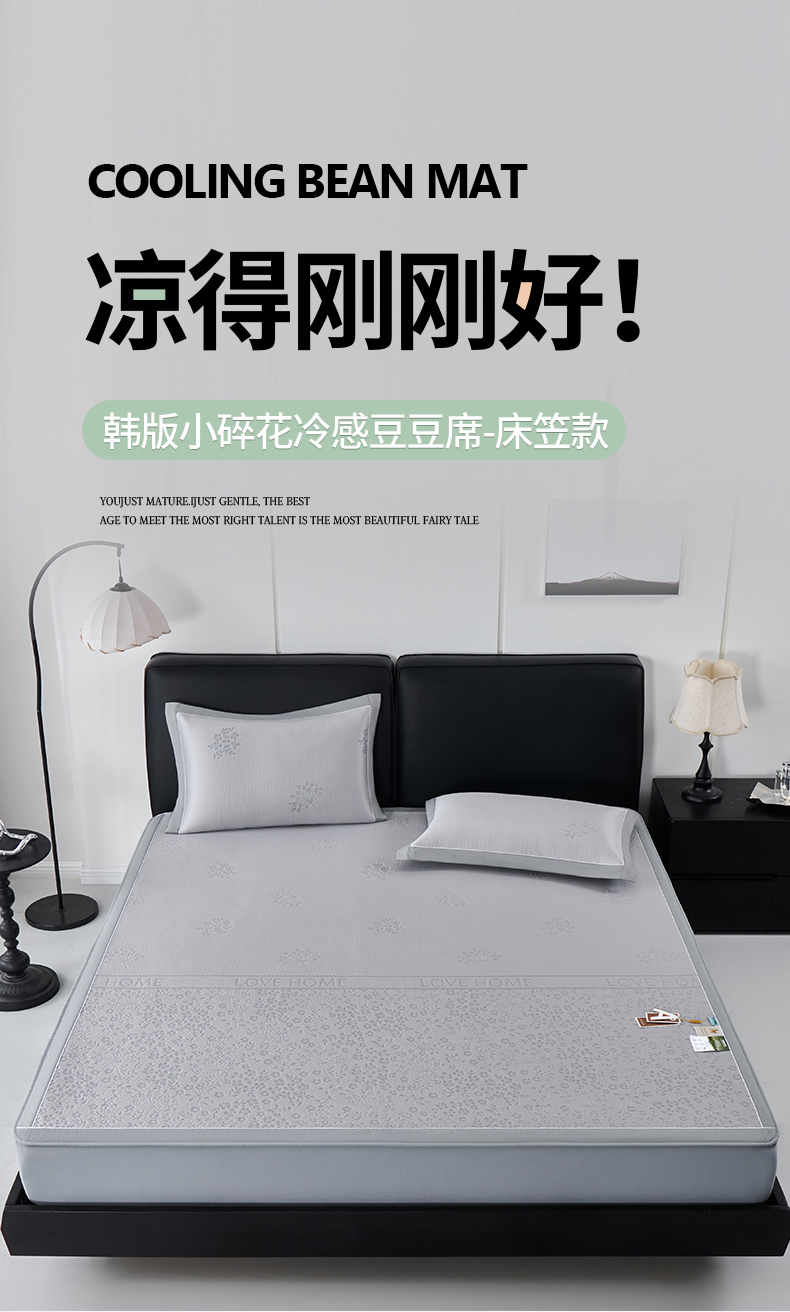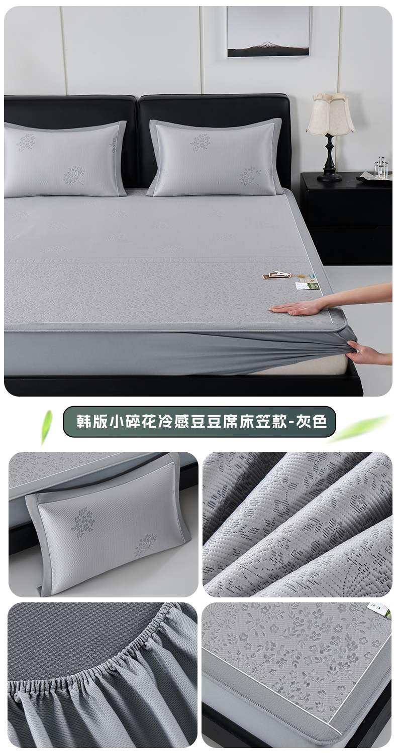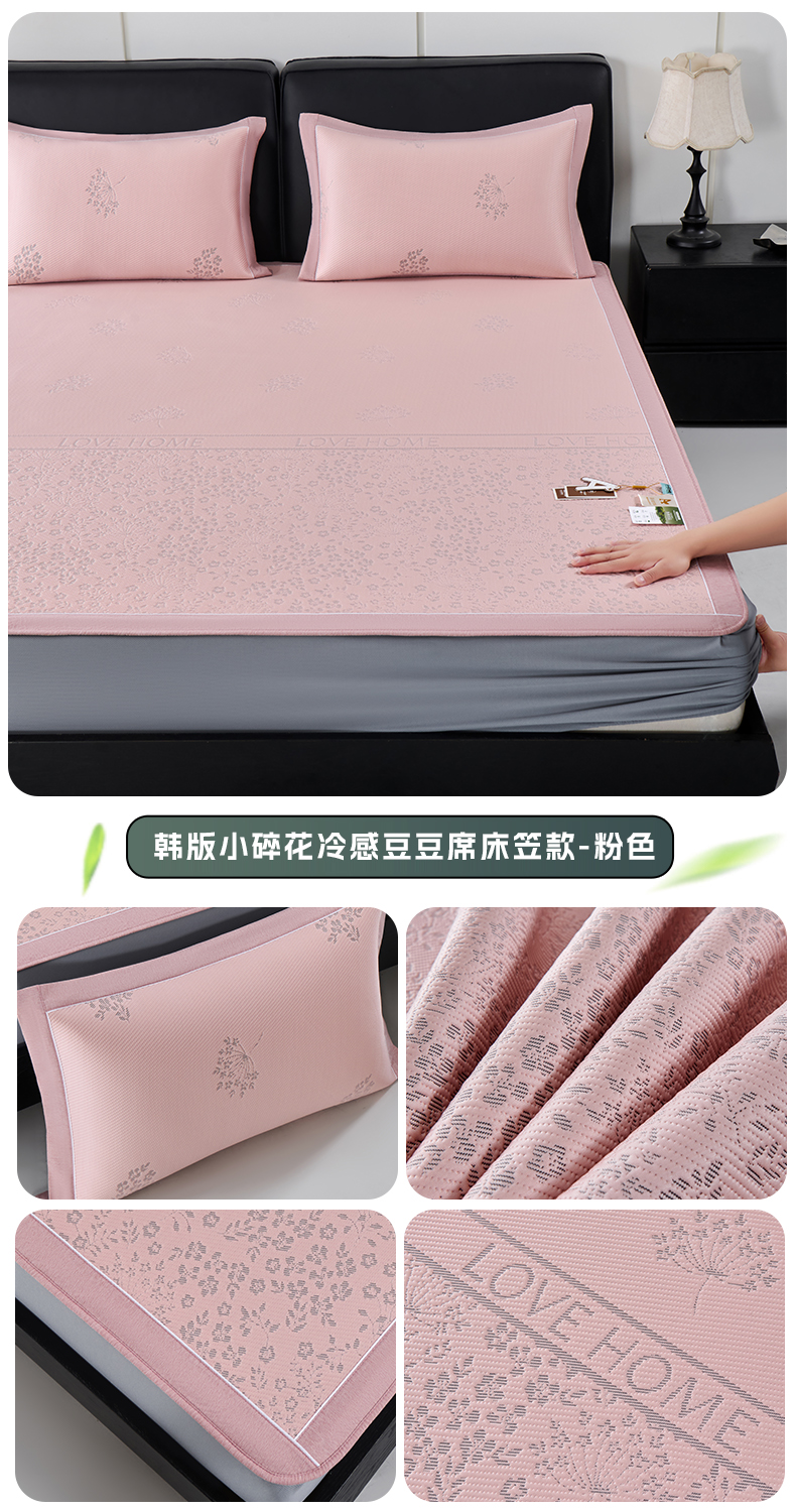 (总)小牛席业 2026新款韩版小碎花冷感豆豆席凉席席子(床笠款),粉色,灰色,蓝色,抹茶