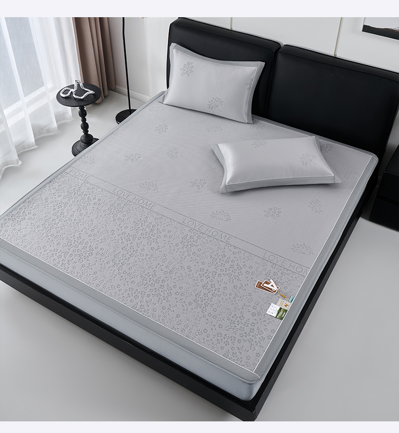(总)小牛席业 2026新款PE凉感轻奢赫本提花冰丝席凉席席子,粉色,灰色,蓝色,抹茶,香槟