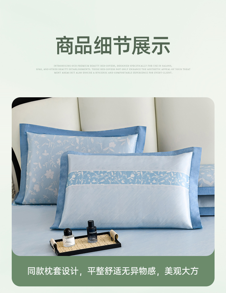 商品名称:小牛席业 2026新款加厚款碳光凉感印花冰丝席凉席席子(床笠款) 琉璃叶语-蓝色