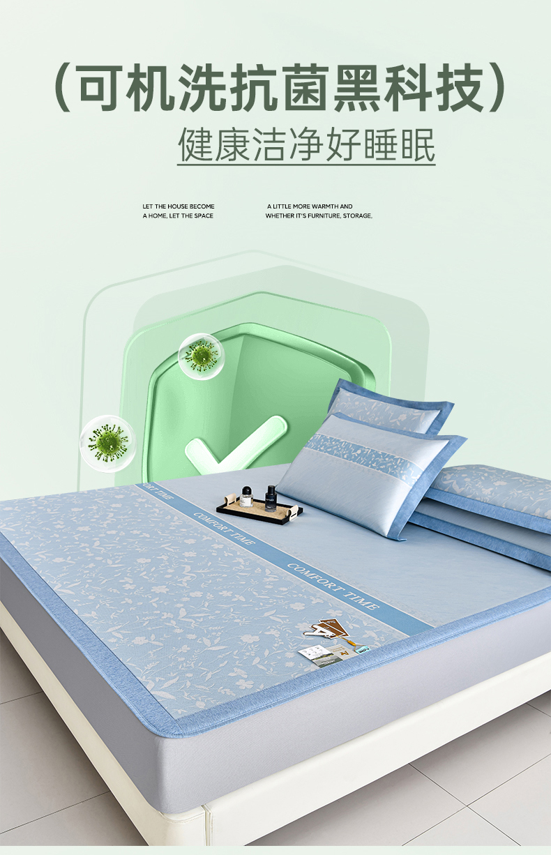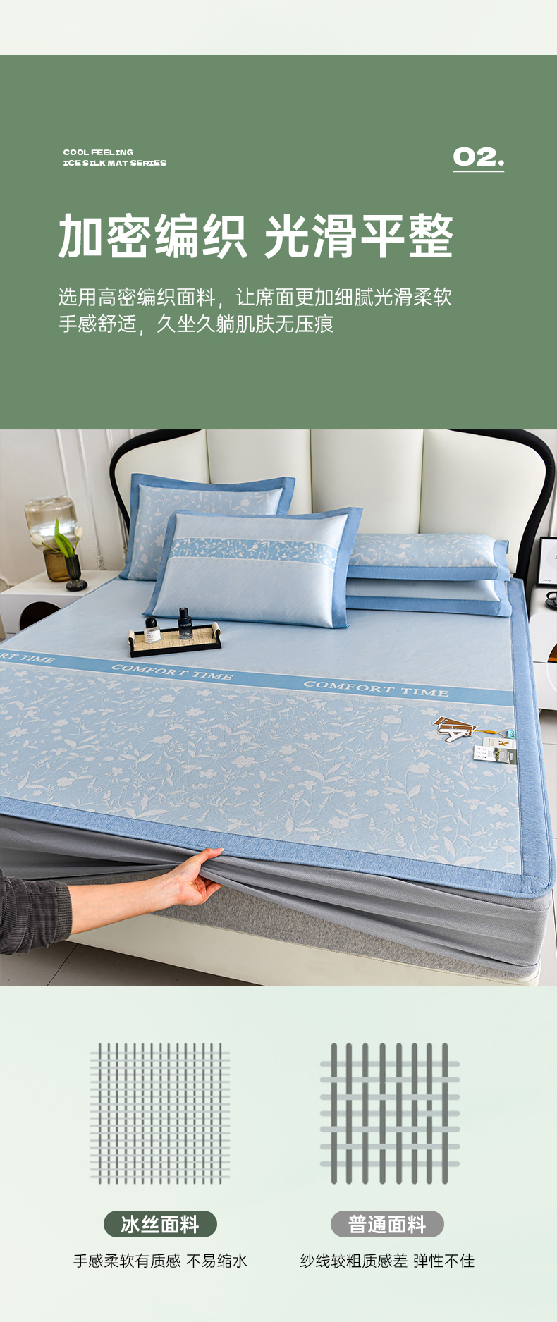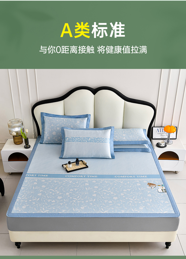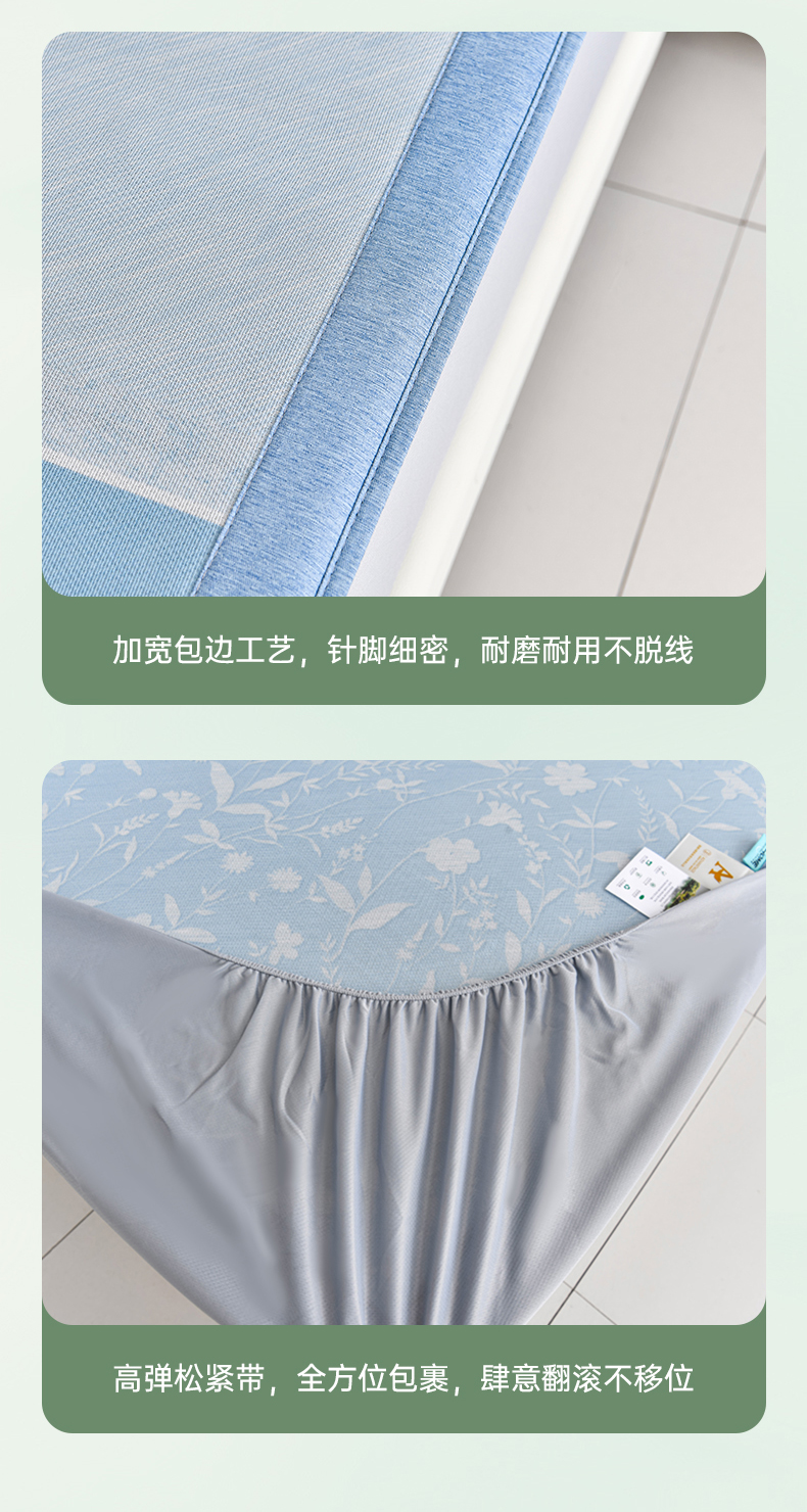 (总)2023新款超精密冰丝席-小斜纹系列-床笠款藤席凉席竹席,粉色,蓝色,绿色,银灰