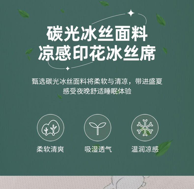 (总)小牛席业 2026新款加厚款碳光凉感印花冰丝席凉席席子,贝贝熊,彩色煤球,花间集,花纹小熊,可爱小象,烂漫山茶花,琉璃叶语-粉色,琉璃叶语-灰色,琉璃叶语-蓝色,琉璃叶语-绿色,轻奢赫本,清凉夏日,清新叶语-灰,清新叶语-绿,清馨玫瑰,仙仙草,小号南瓜,熊猫胖哒,椰树大象