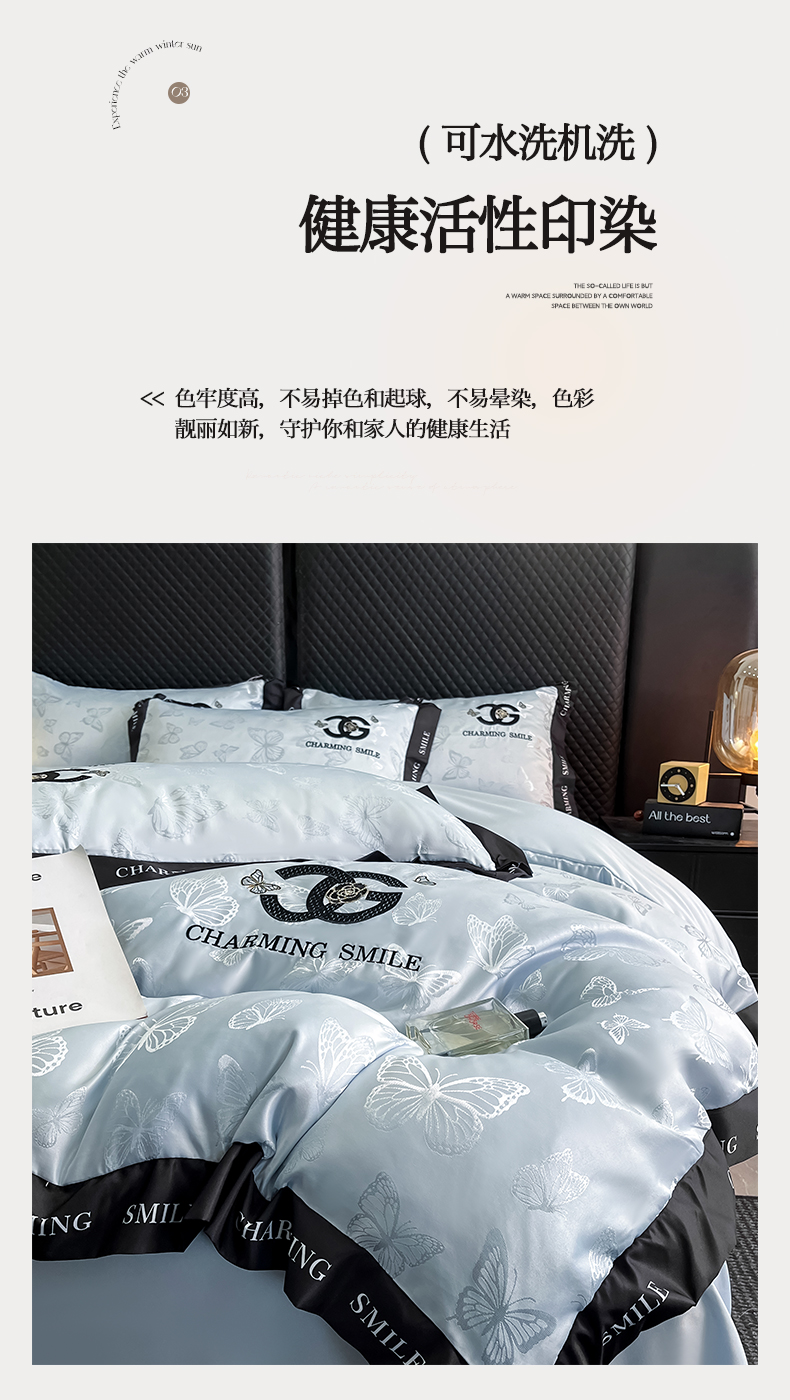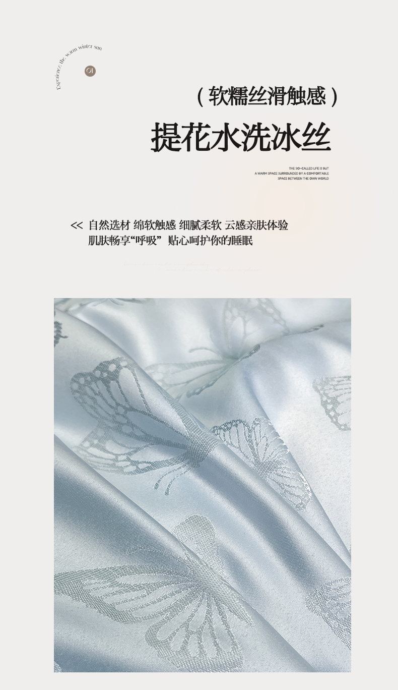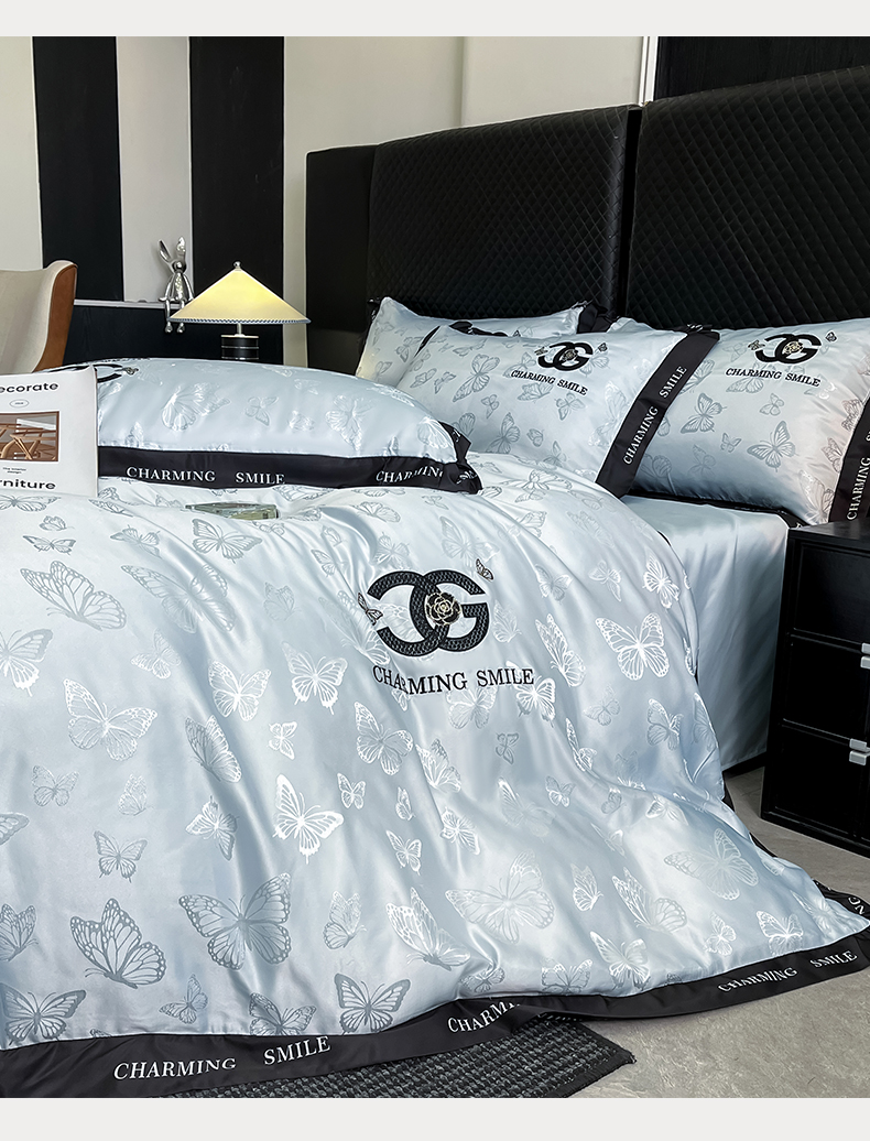 当前位置: 91家纺网 > 商品网购 > 床品套件 > 四件套 > 其它四件套 > 澳梵家居 2026新款冰丝提花水洗真丝四件套-蝶梦系列 蝶梦-梦蓝