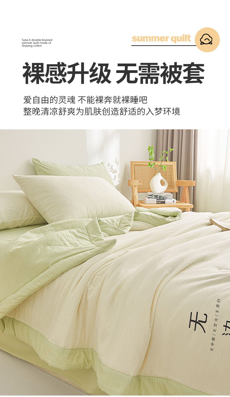 (总)晓时候 2026A类云感双层纱夏被四件套新疆棉花被无染夏凉被空调被
