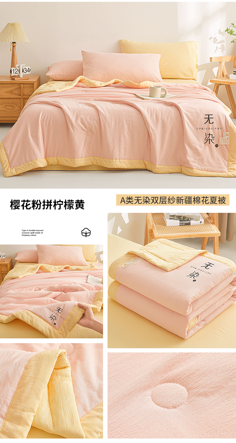 商品名称:(总)晓时候 2026A类云感双层纱夏被四件套新疆棉花被无染夏凉被空调被