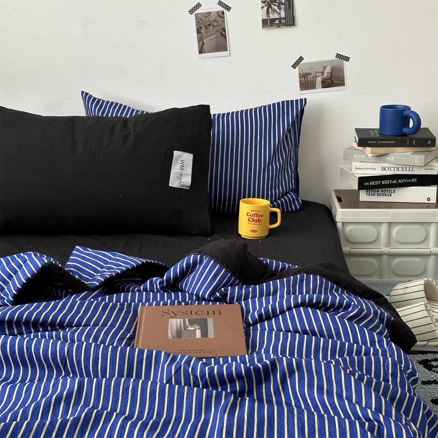 (总)拾一 2026新款条纹简约中古木棉水洗棉四件套,慵懒条-黑,慵懒条-红,慵懒条-灰,慵懒条-卡其,慵懒条-克莱因蓝,慵懒条-奶茶,慵懒条-棕