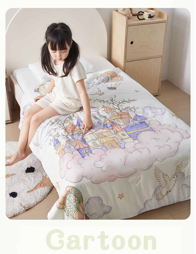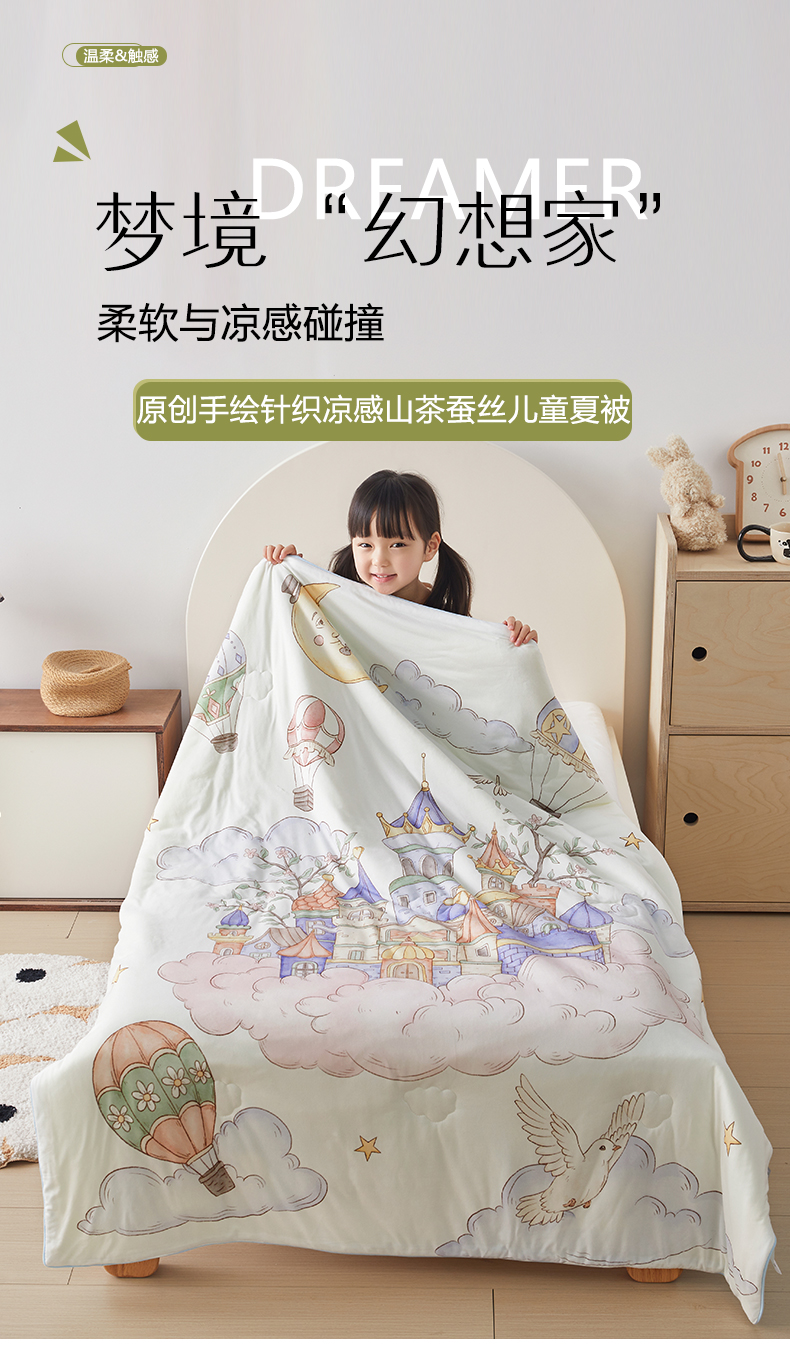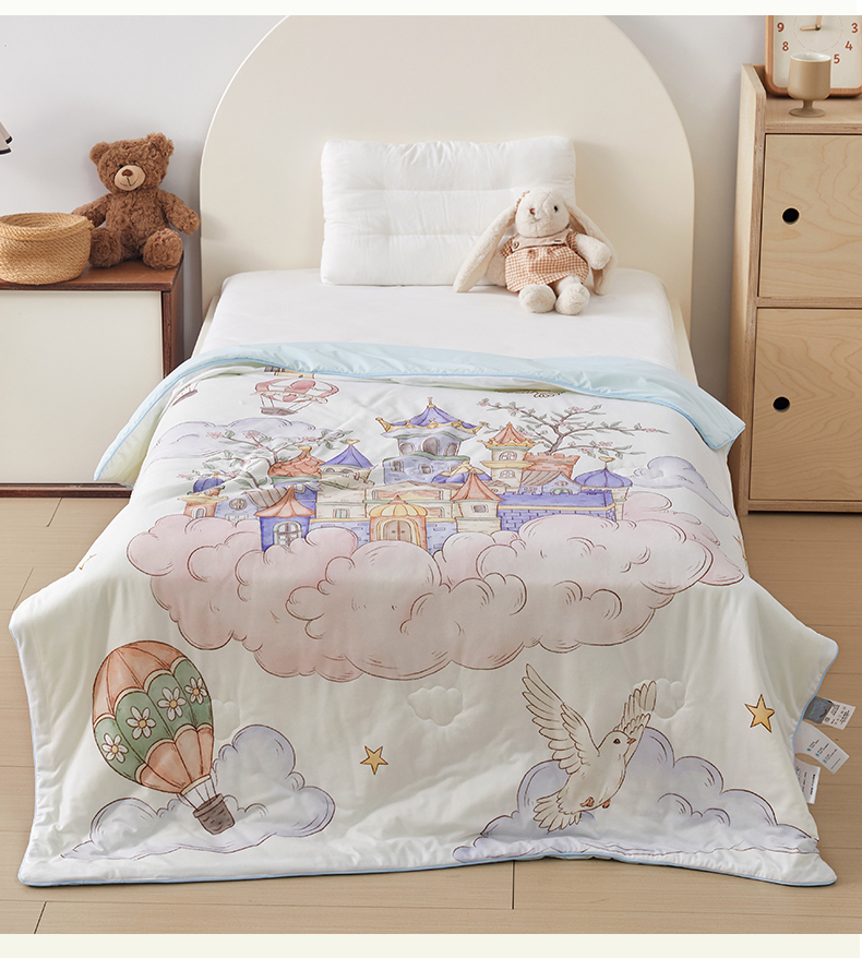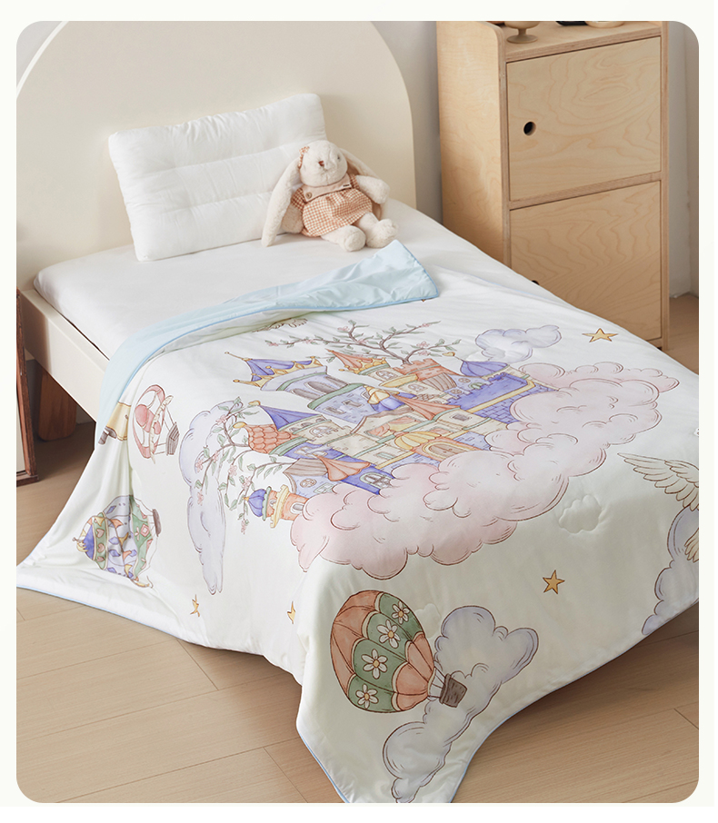 被子 > 夏被 > 荷马之梦 2026新款凉凉梦境-原创手绘母婴风针织凉感山茶蚕丝儿童双感夏被夏凉被空调被 天空梦之城
