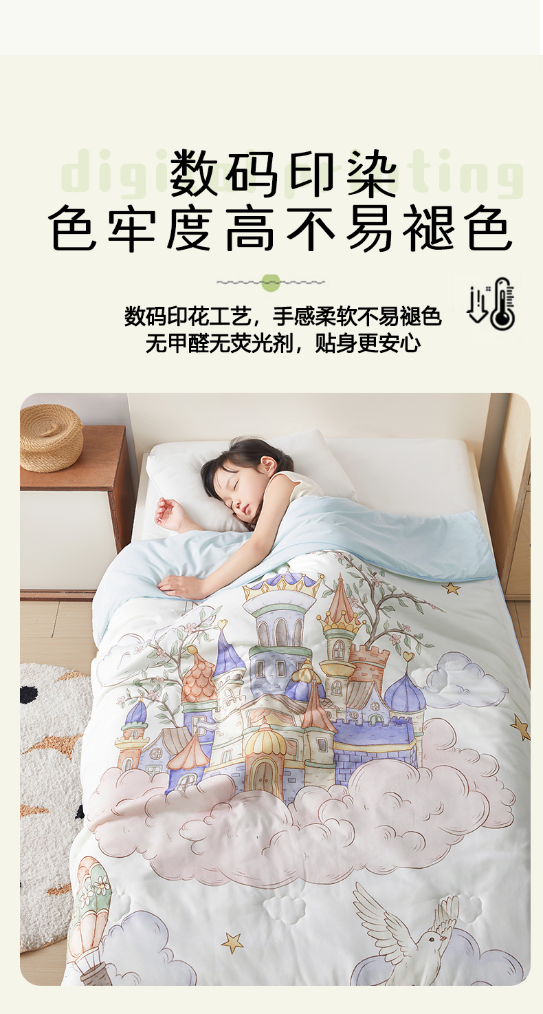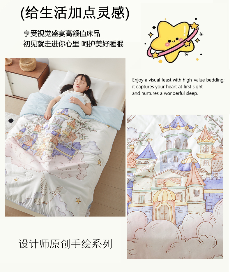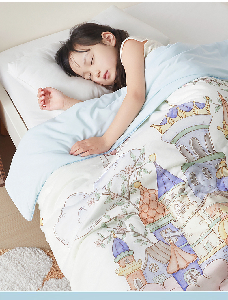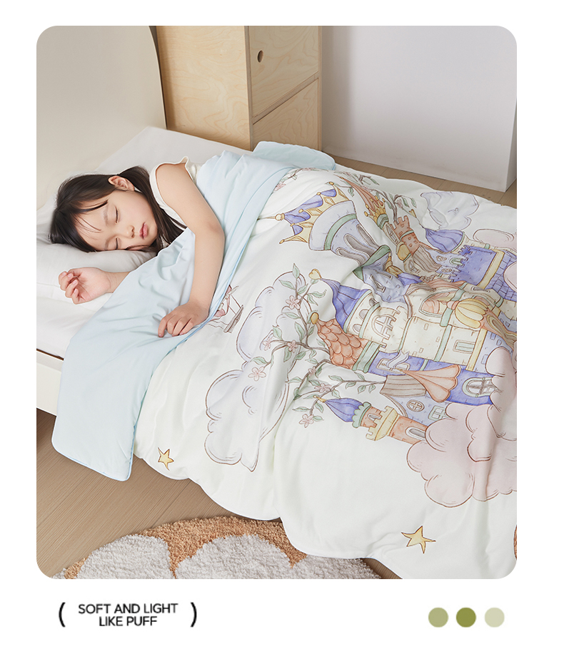 被子 > 夏被 > 荷马之梦 2026新款凉凉梦境-原创手绘母婴风针织凉感山茶蚕丝儿童双感夏被夏凉被空调被 天空梦之城