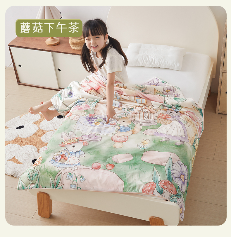 (总)荷马之梦 2026新款凉凉梦境-原创手绘母婴风针织凉感山茶蚕丝儿童双感夏被夏凉被空调被,精灵兔之屋,蘑菇乐园,蘑菇下午茶,跑跑小熊猫,天空梦之城,云端国度,云上演出