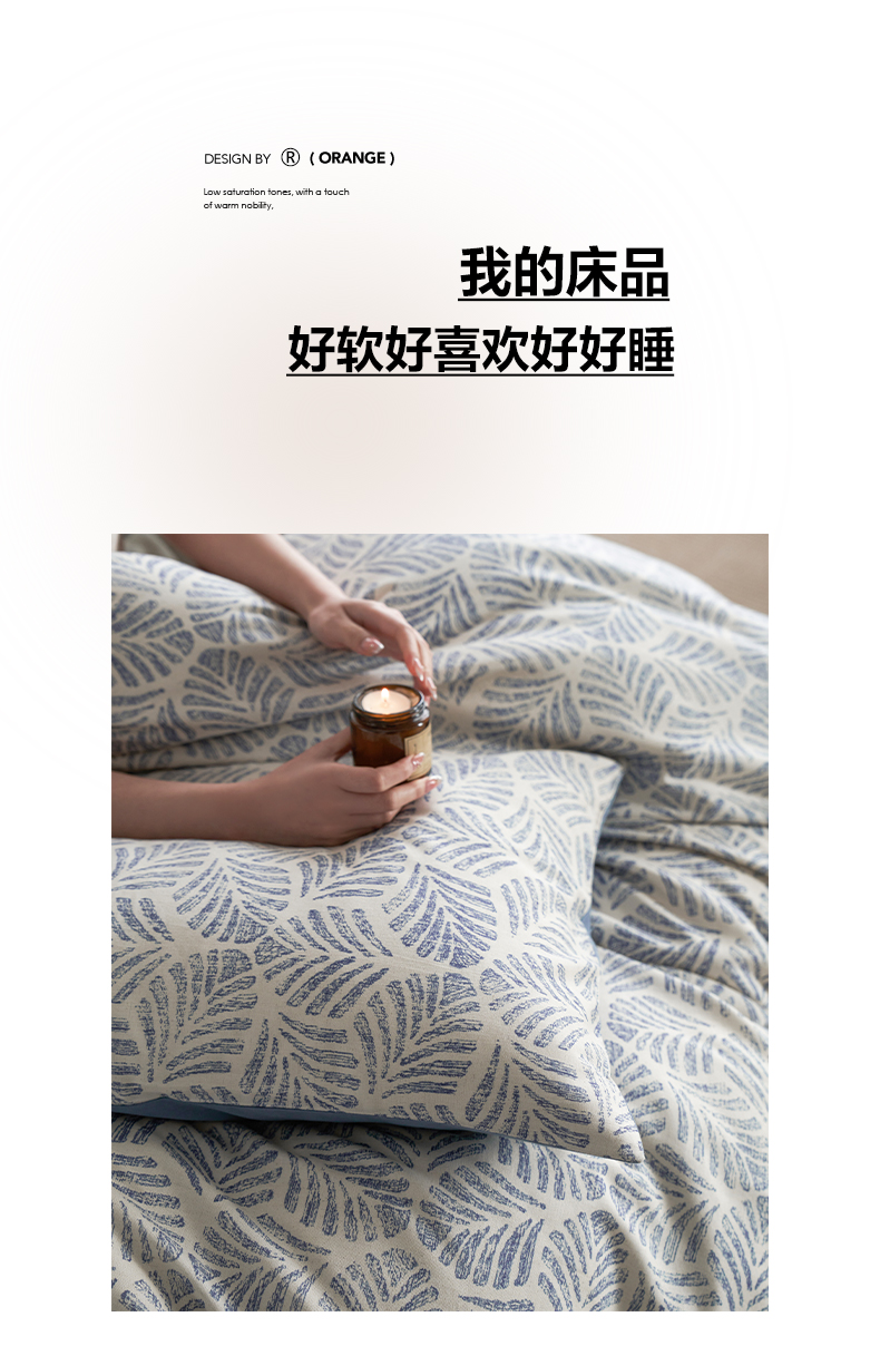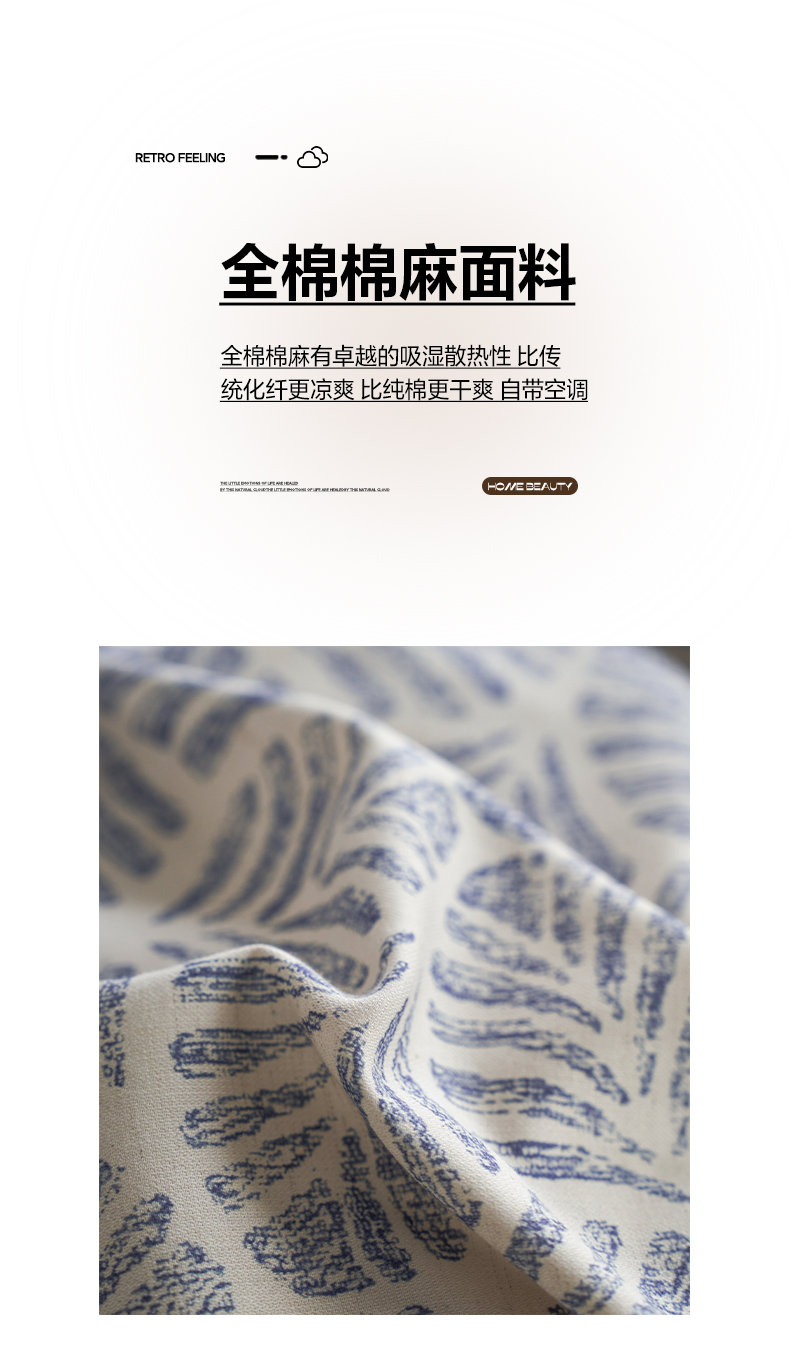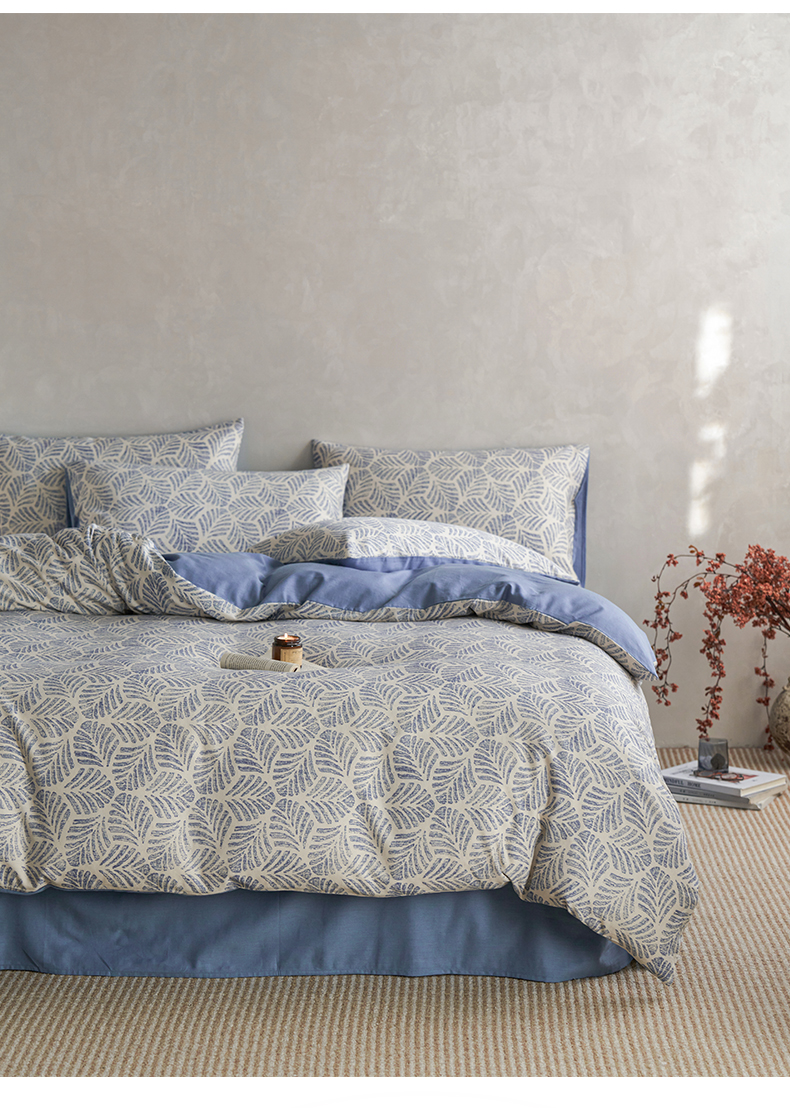 商品名称:如一 2026新款A类复古全棉棉麻印花四件套 叶蓝
