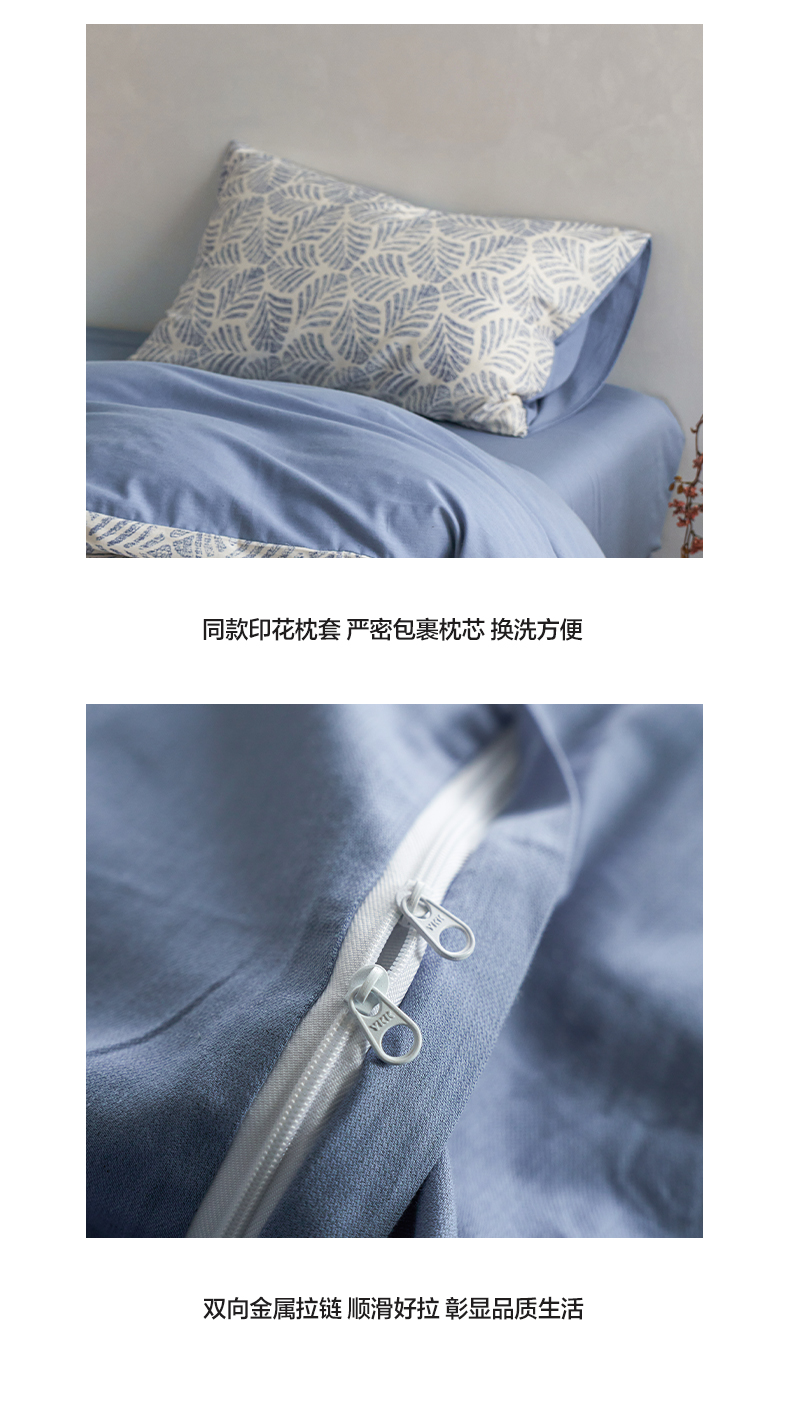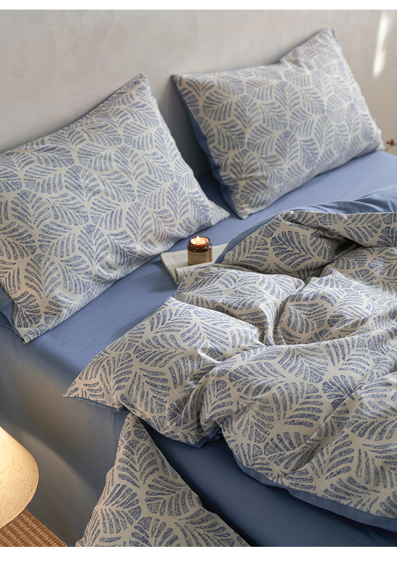 如一 2026新款A类复古全棉棉麻印花四件套 叶蓝