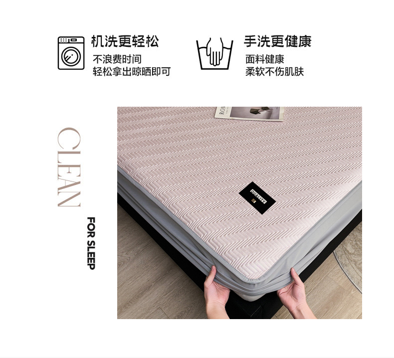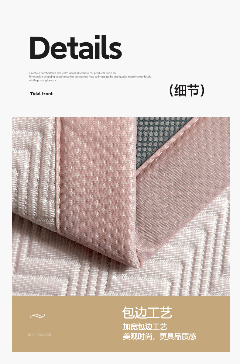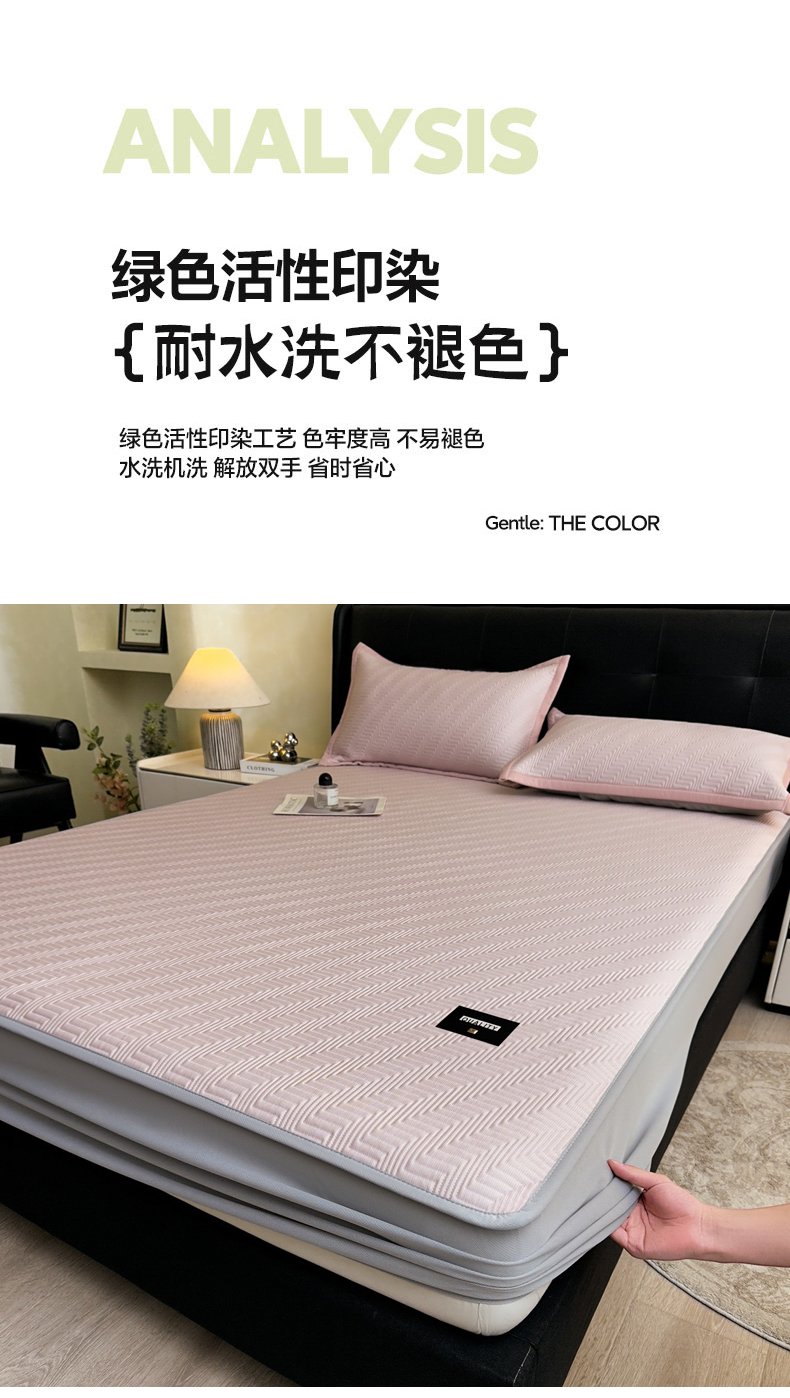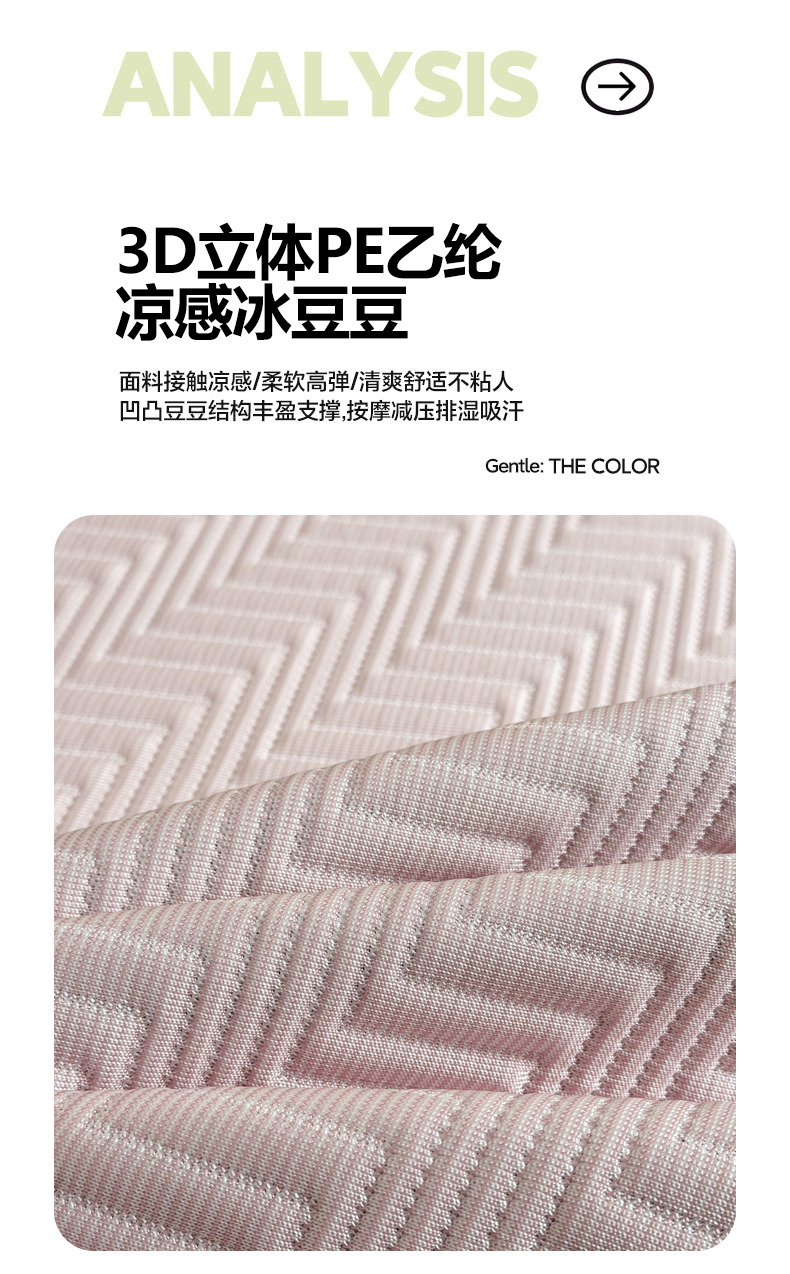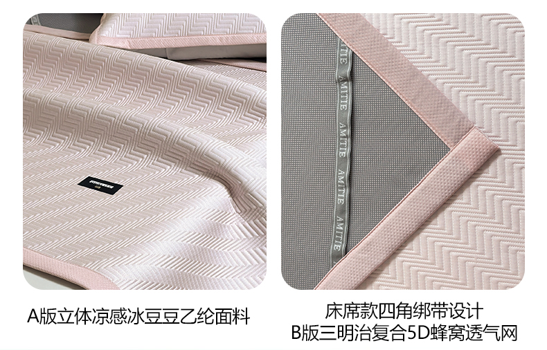 • 91家纺网 家纺一手货源 找家纺 慕木家纺 2026新款A类高克重三明治复合乙纶提花冰豆豆凉席床笠冰棱斜纹系列(提供买家秀) 冰棱斜纹-粉床席款