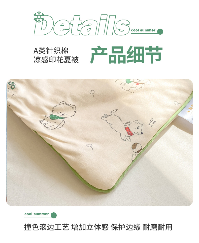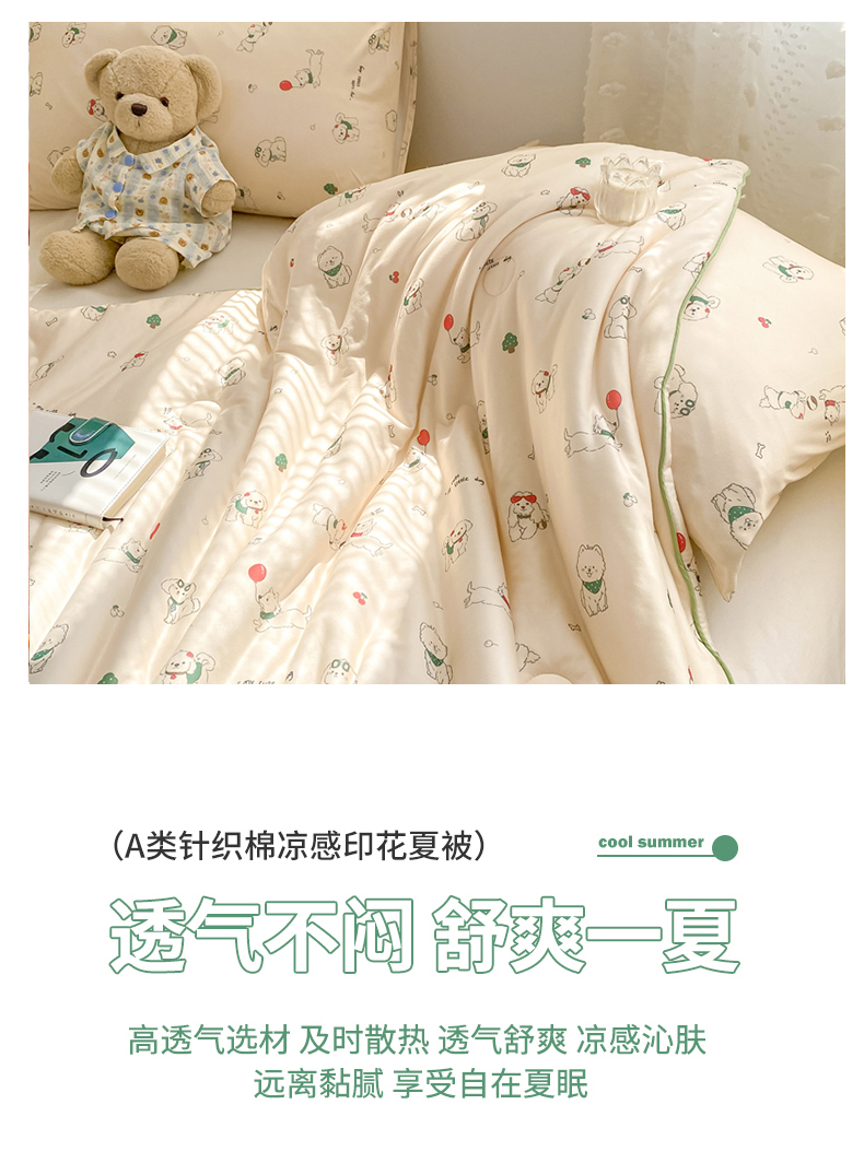 商品名称:恋之巢家纺 2026新款四季款可水洗牛奶丝针织棉夏被大豆夏凉被空调被可机洗薄被子被芯直播外贸专供大豆被夏被 法式小狗-软糯款