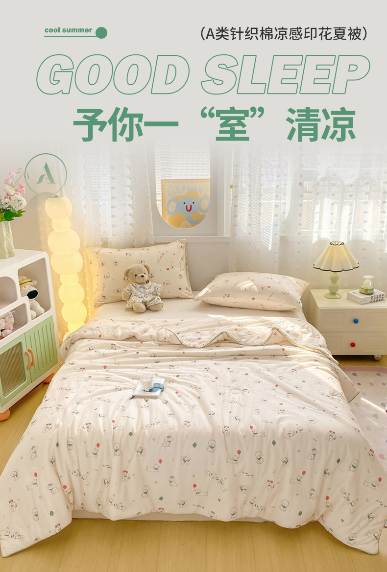 被子 > 夏被 > 恋之巢家纺 2026新款四季款可水洗牛奶丝针织棉夏被大豆夏凉被空调被可机洗薄被子被芯直播外贸专供大豆被夏被 法式小狗-软糯款