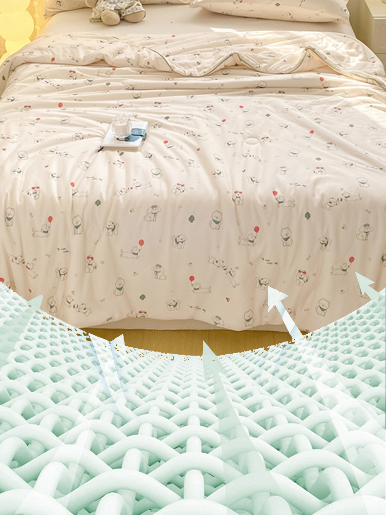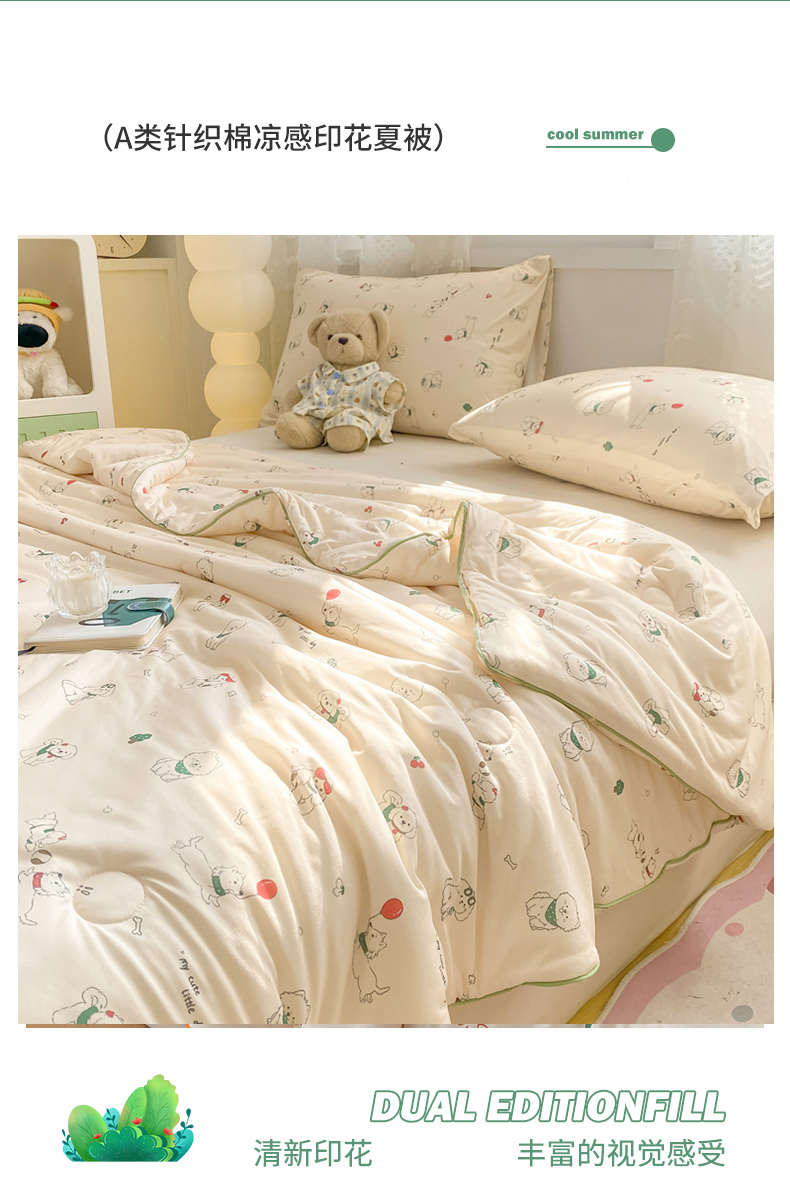 恋之巢家纺 2026新款四季款可水洗牛奶丝针织棉夏被大豆夏凉被空调被可机洗薄被子被芯直播外贸专供大豆被夏被 法式小狗-软糯款