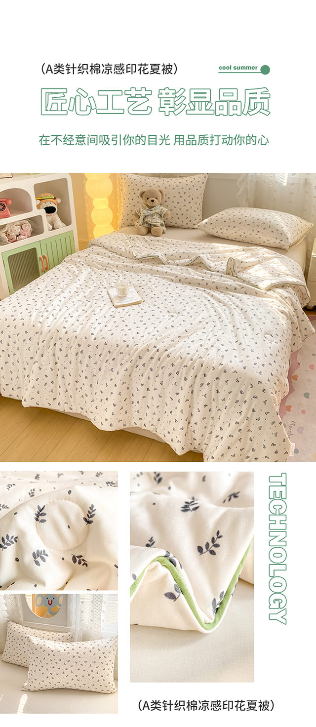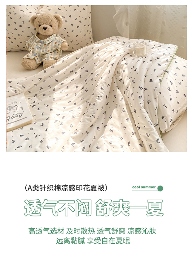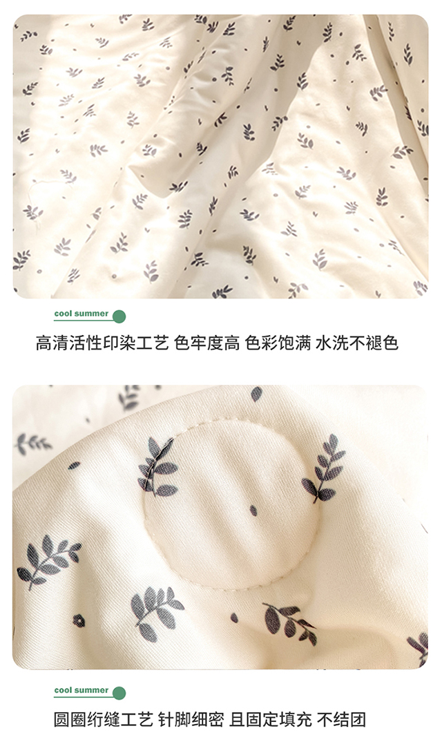 商品名称:恋之巢家纺 2026新款四季款可水洗牛奶丝针织棉夏被大豆夏凉被空调被可机洗薄被子被芯直播外贸专供大豆被夏被 叶子-软糯款