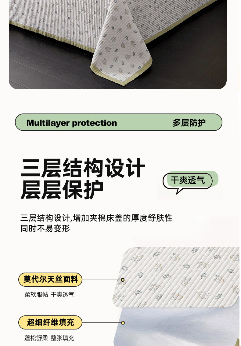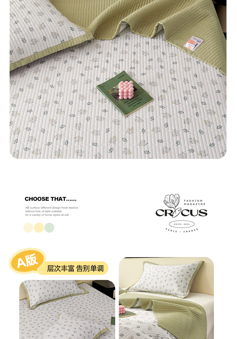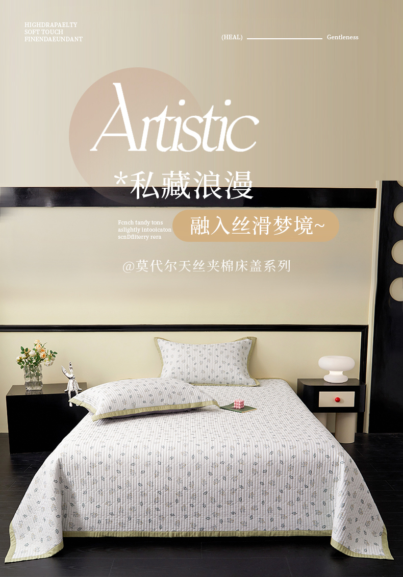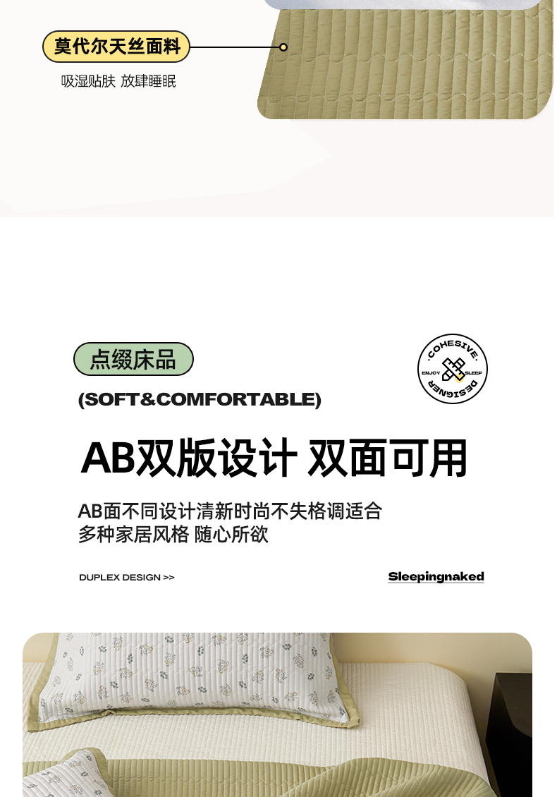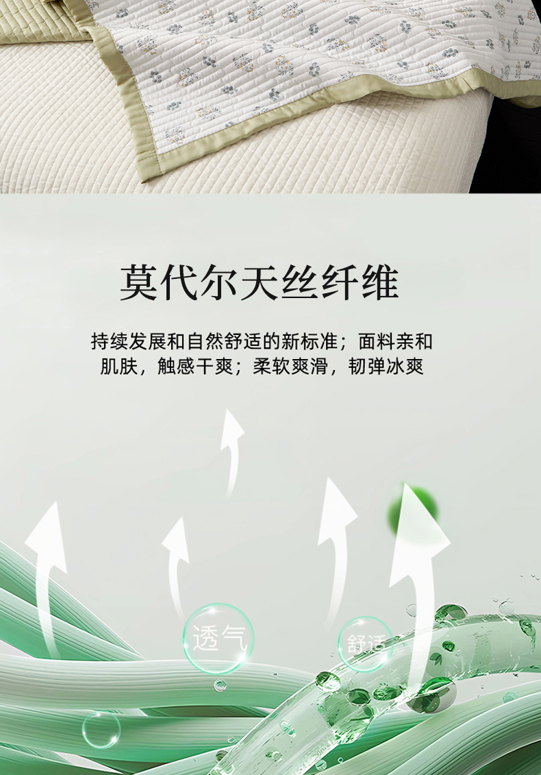 • 91家纺网 家纺一手货源 找家纺 金艾草 2026春夏新款莫代尔天丝水洗床盖有同款夏被床盖单件 甜果-绿