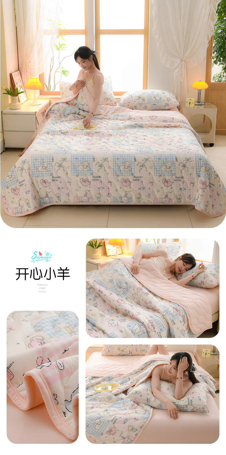(总)珍贝家纺 2026新款亲肤舒适恬梦针织棉夏被夏凉被空调被被子被芯,小晴天,彩虹森林,彩色的梦,粉妆小兔,卡其粉,卡其黄,卡其灰,卡其绿,开心小羊,兰花,浪漫玫瑰,绿意,蘑菇小熊,清风,细语,闲趣时光,小橙子,熊猫宝宝,寻觅花香