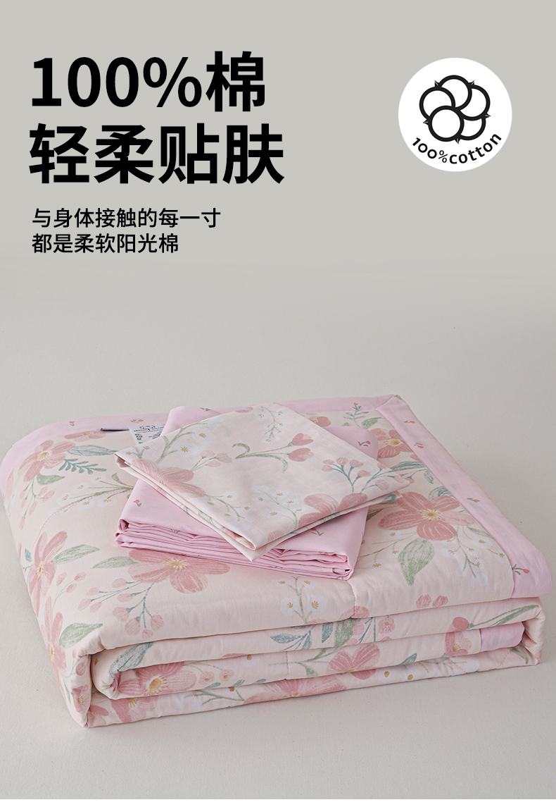 商品名称:尊妙被业 2026春夏新款全棉印花夏被空调被夏凉被 莫奈花园-粉