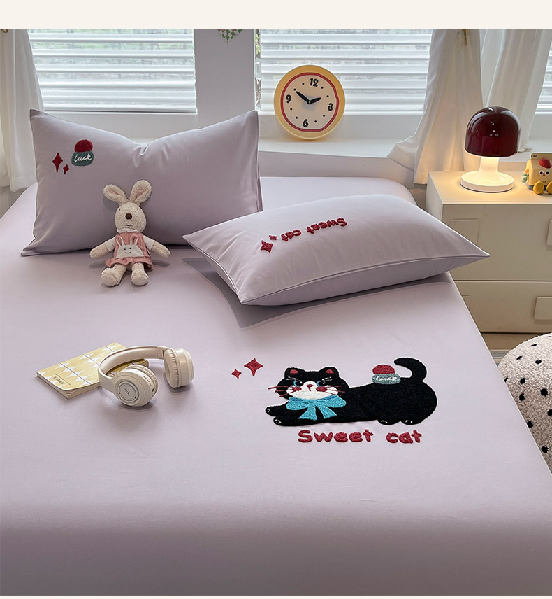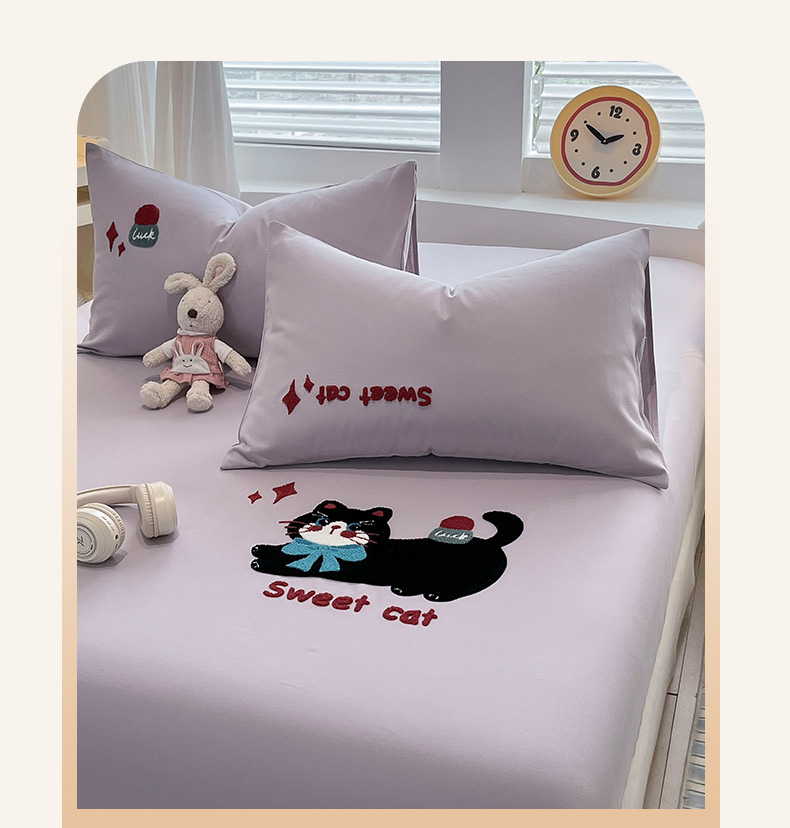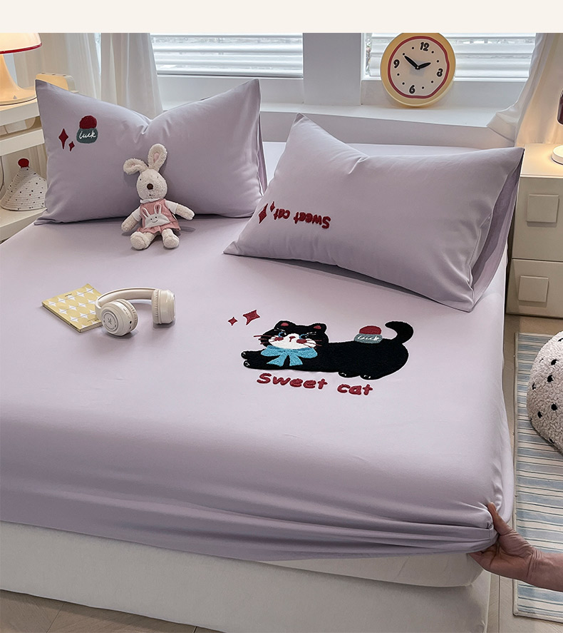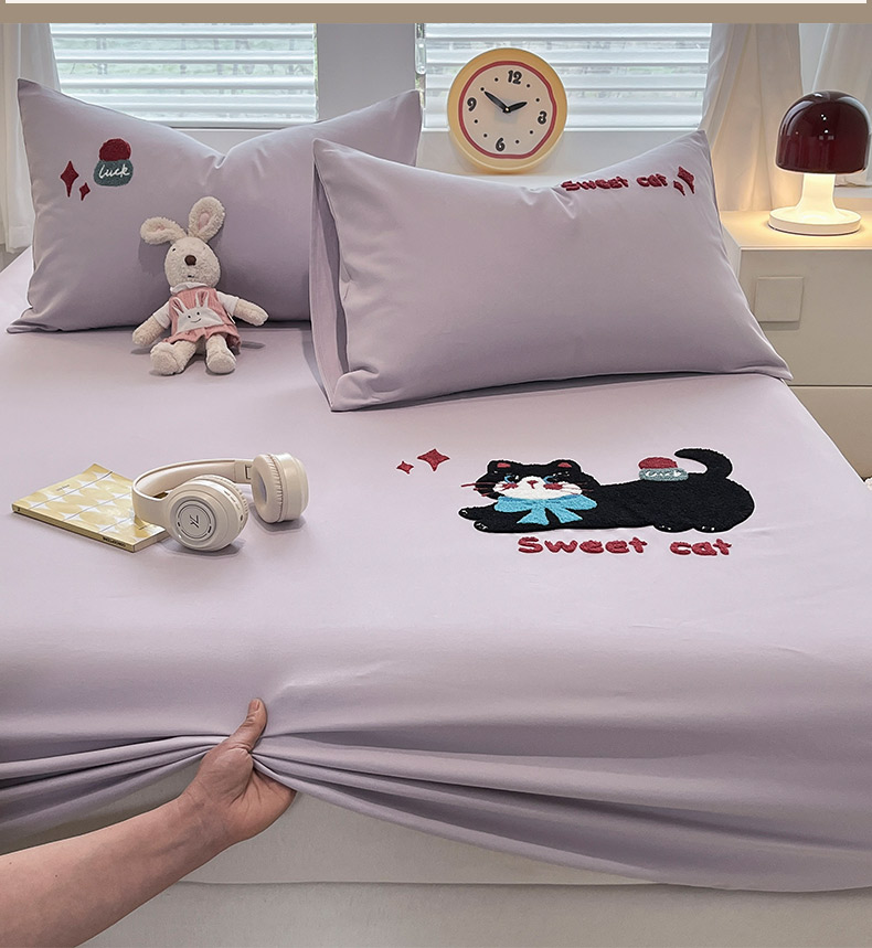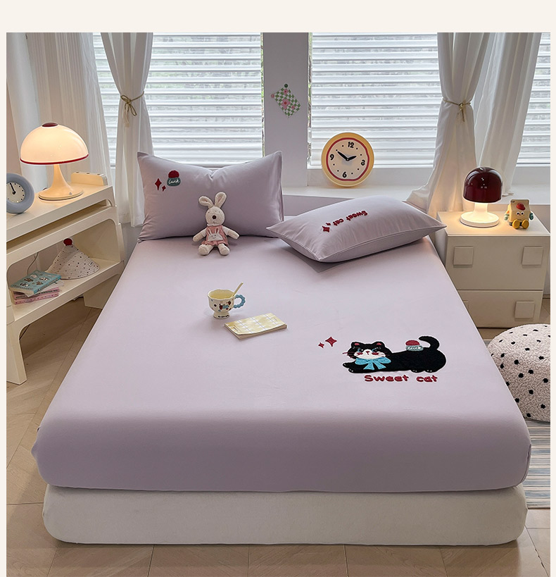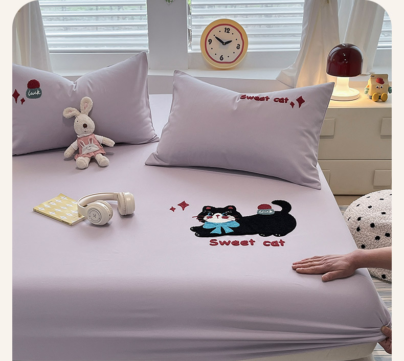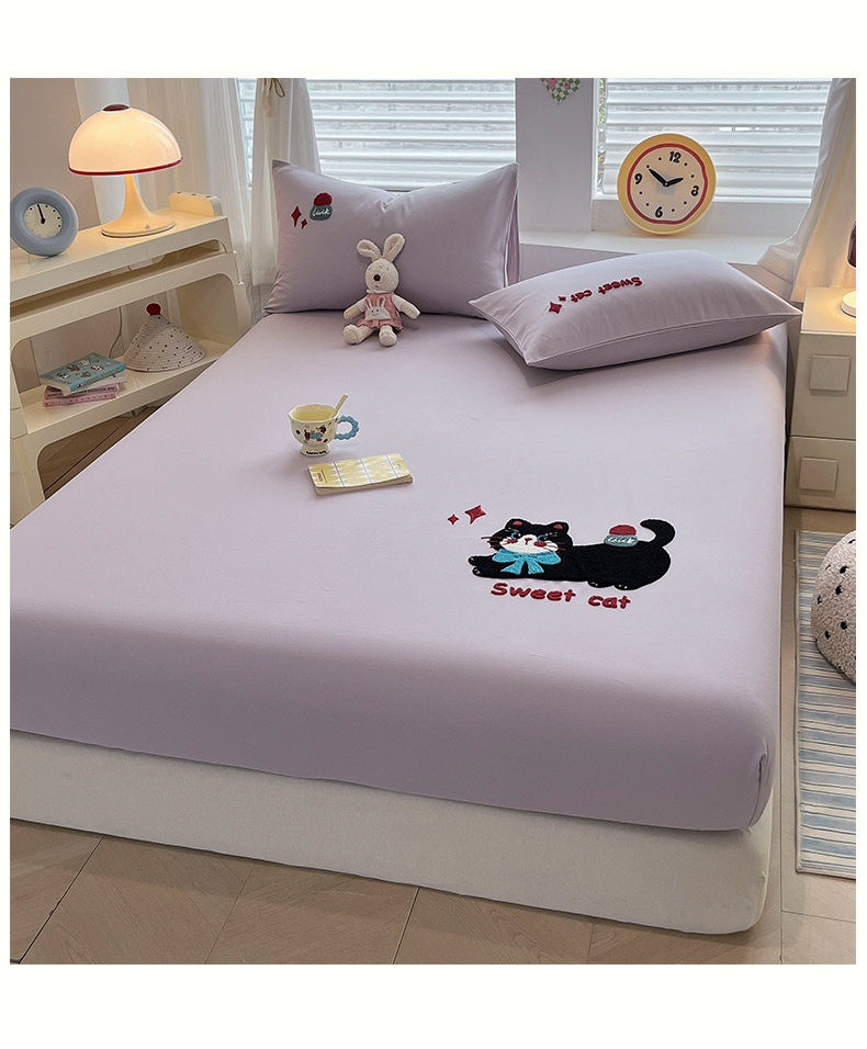 商品名称:其奥家纺 2026春夏新款纯棉全棉老粗布床笠纯色凉席 甜心小猫-紫