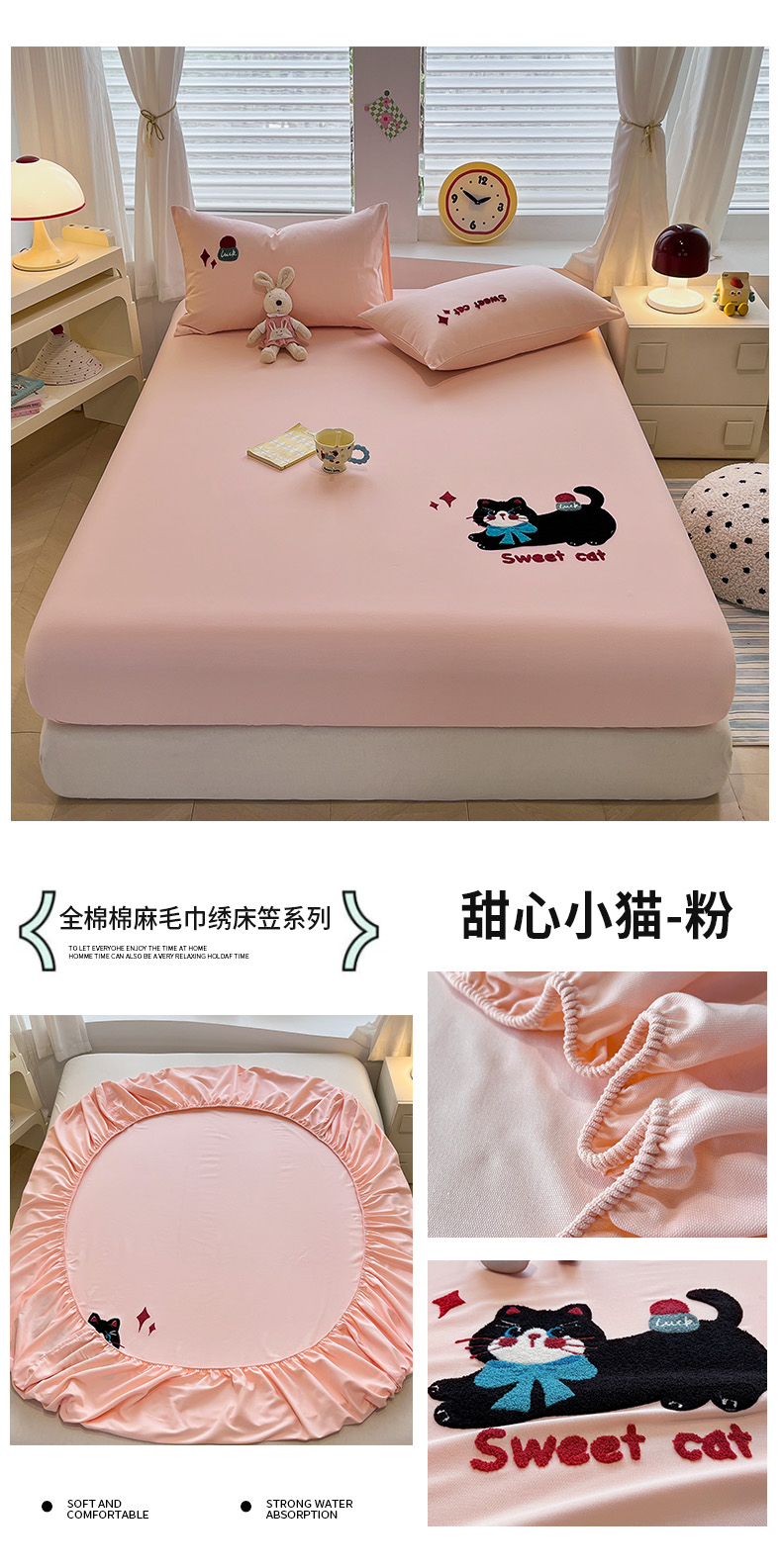 (总)其奥家纺 2026春夏新款纯棉全棉老粗布床笠纯色凉席,欢乐狗-奶咖,奇迹熊-浅米,甜心小猫-粉,甜心小猫-紫,小马奔奔-灰