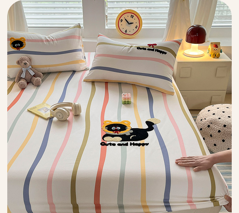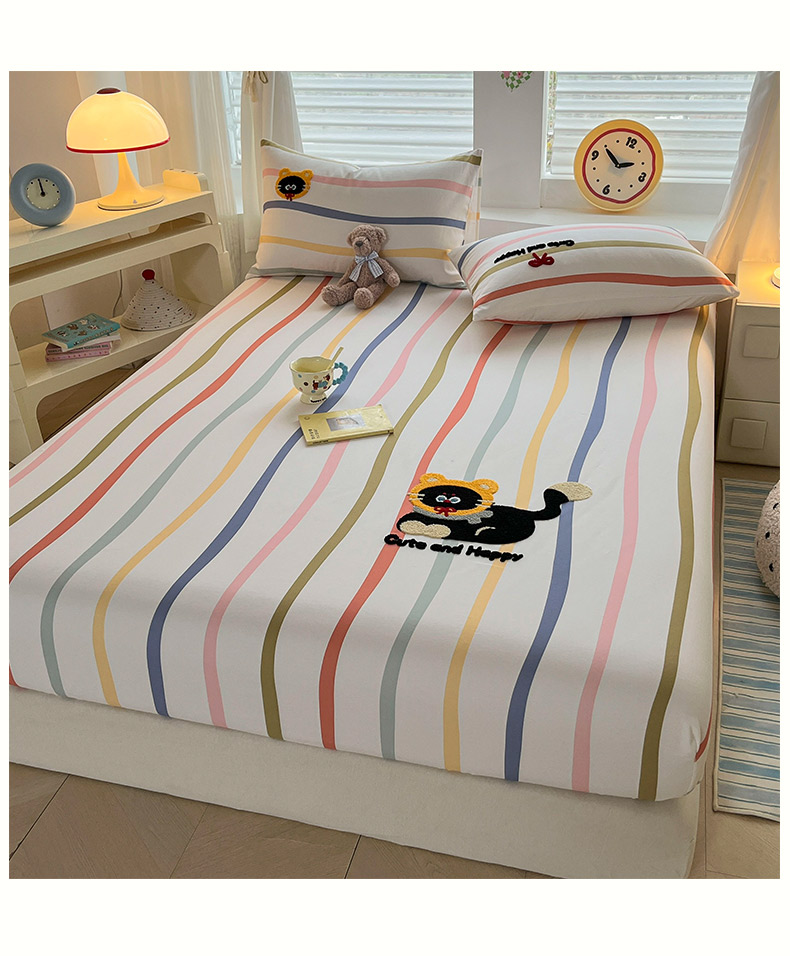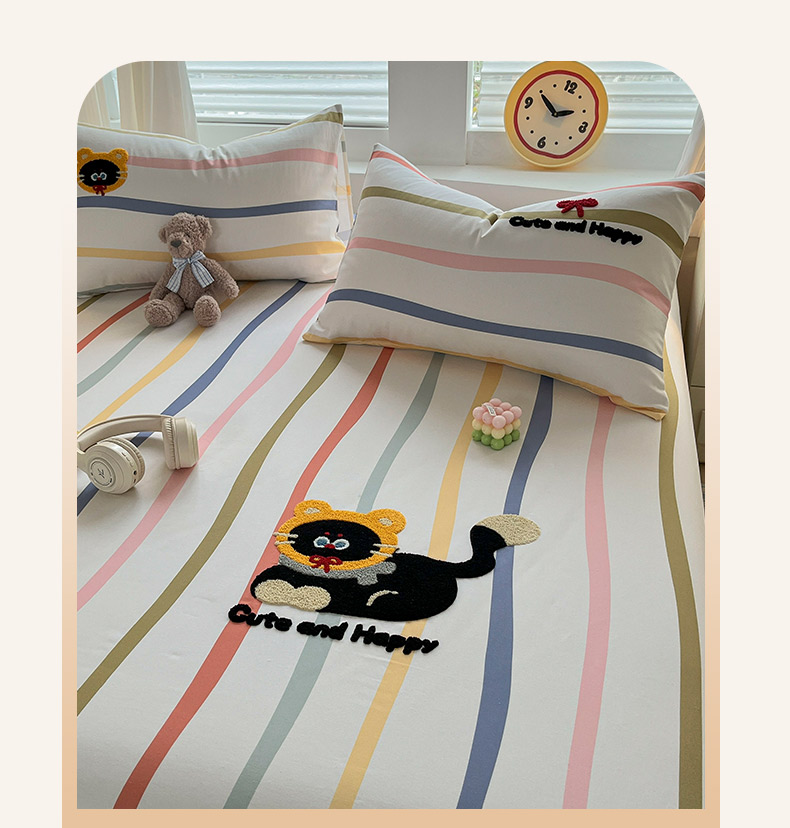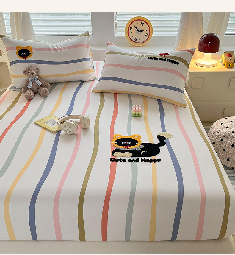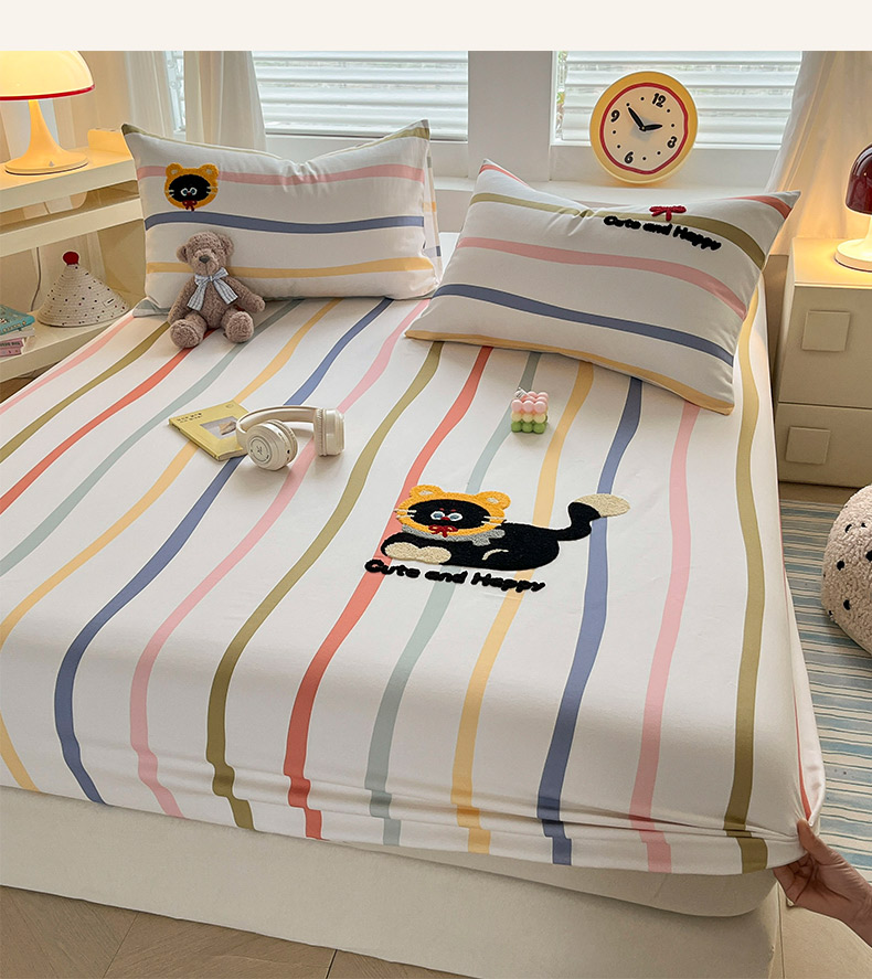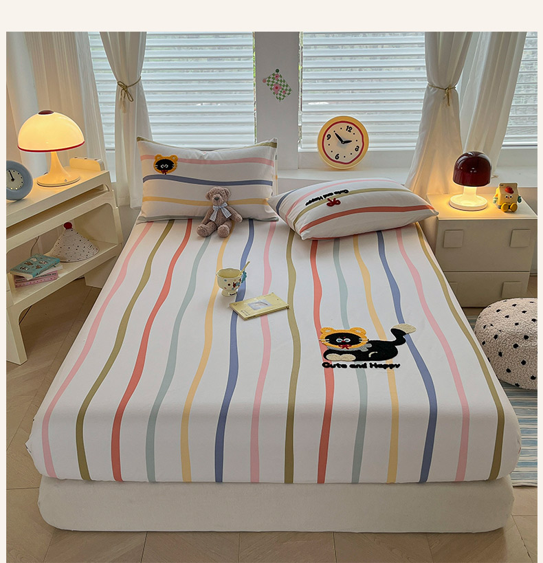 商品名称:其奥家纺 2026春夏新款纯棉全棉老粗布床笠印花凉席 乖乖猫-彩条